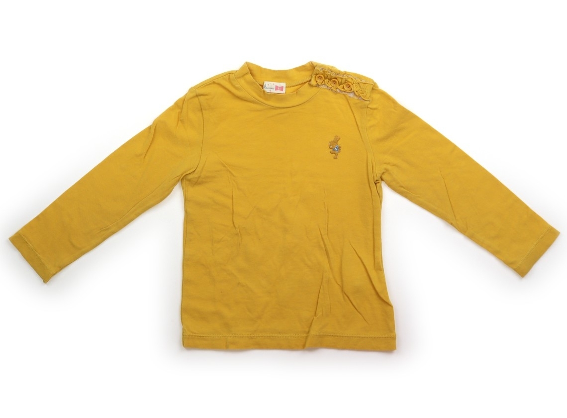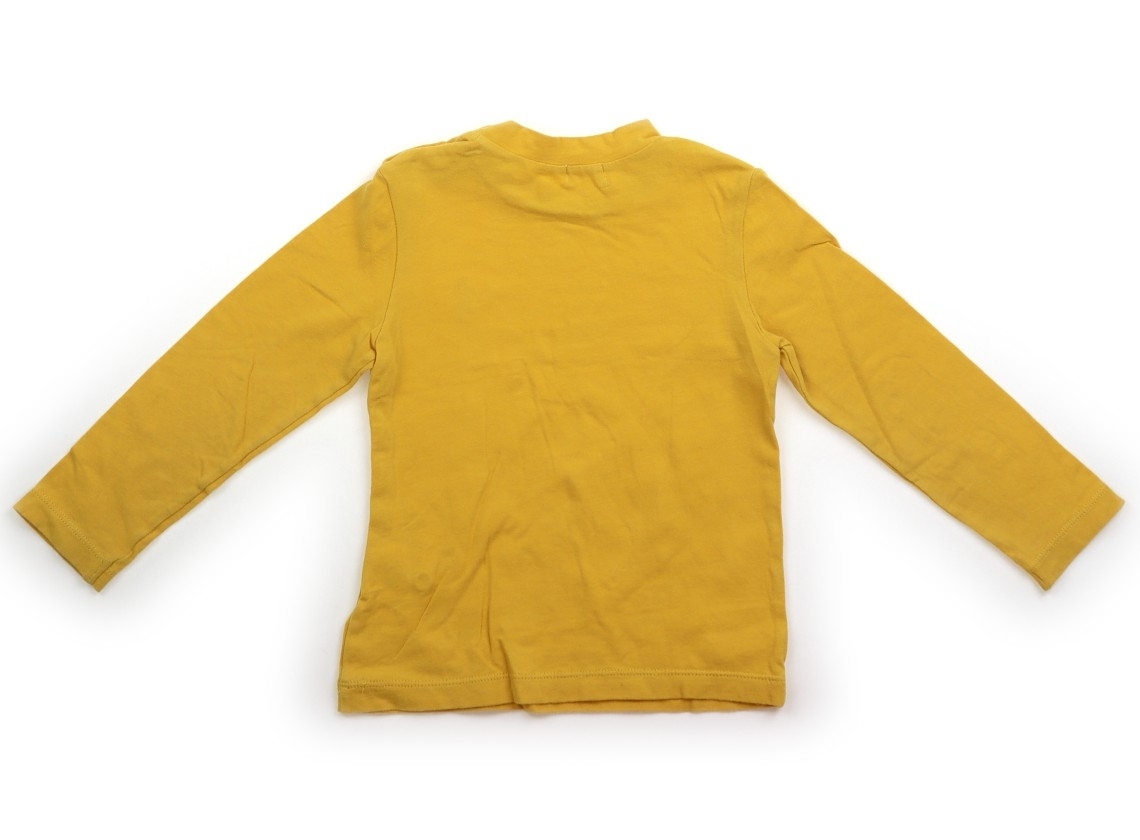 綿・ポリウレタンの伸縮性あるカットソー地で、替えボタン付き。ブランドタグにシールはがし跡のノリ残りあり。全体に毛羽立ち・袖口に黒ずみ・お腹に黒いシミあり。