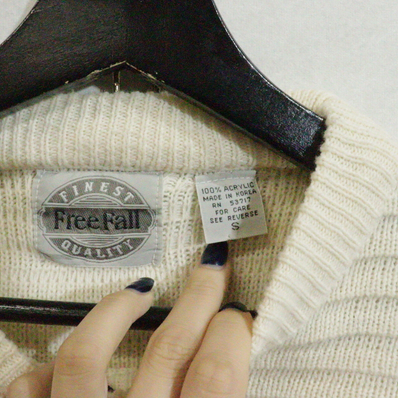 商品名 F803 80sビンテージ FreeFall アクリルニットセーター■1980年代製 表記Sサイズ アイボリー 無地 アメカジ 古着 激安 古着卸 ストリート