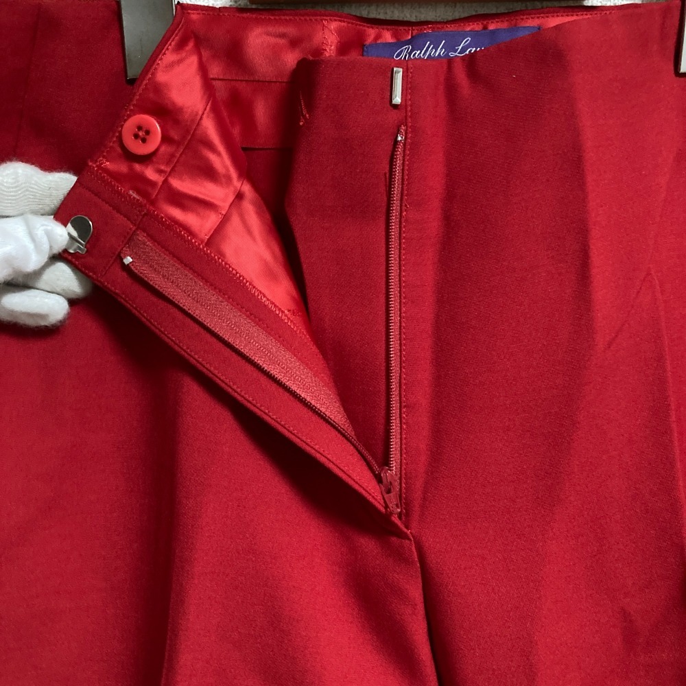 商品名:RALPH LAUREN ラルフローレンパープルレーベル ウール シルクブレンド テーパード パンツ スラックス サイズ6 レッド