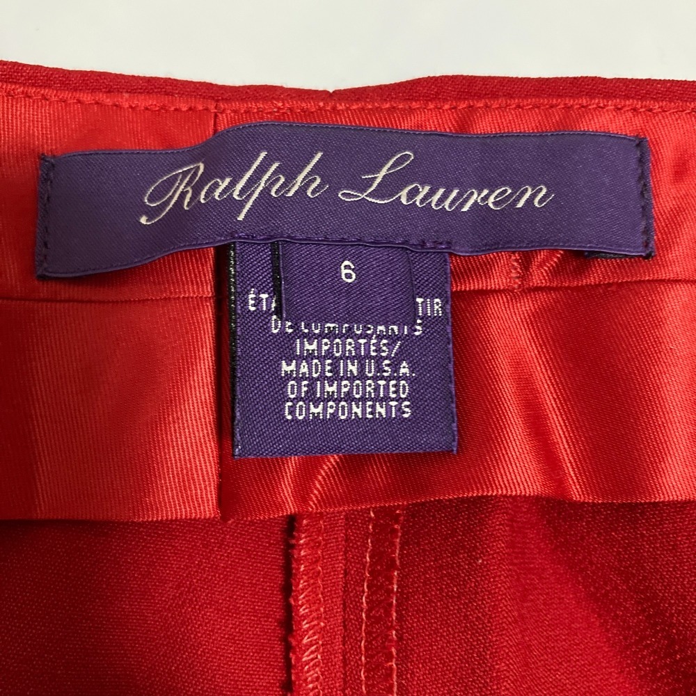 美品 RALPH LAUREN ラルフローレンパープルレーベル ウール シルクブレンド テーパード パンツ スラックス サイズ6 レッド