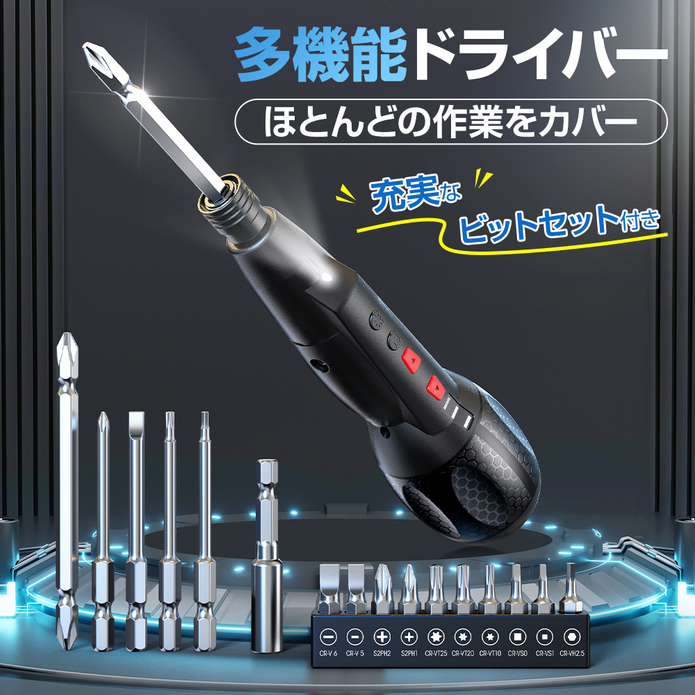 電動ドライバー コードレス ドライバードリル 小型 電動 ドライバー 充電式 ドライバーセット 軽い 電動工具