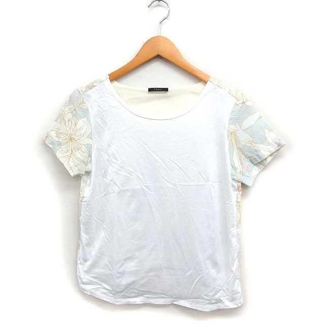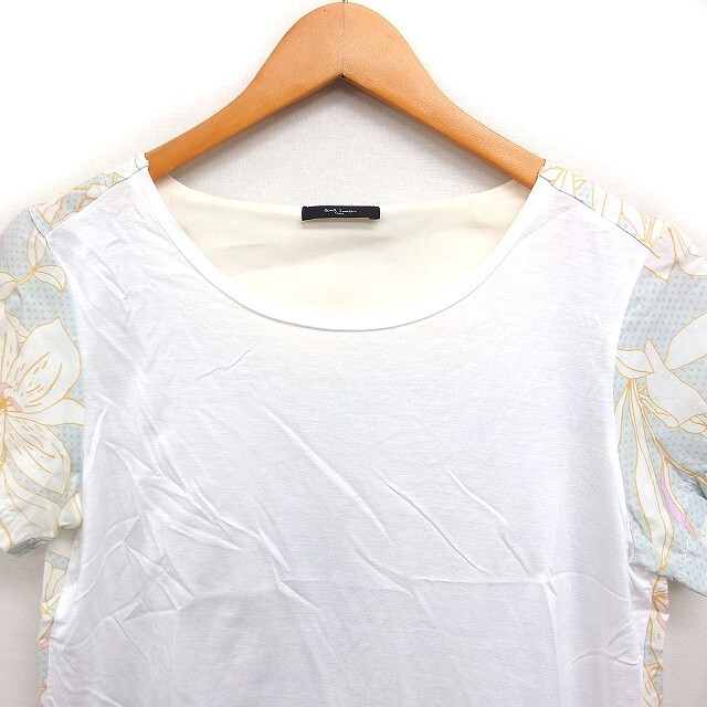 ポールスミス ブラック Paul Smith BLACK 国内正規品 素材切替 カットソー Tシャツ 半袖 無地 花柄 S ホワイト 白 /FT40 レディース