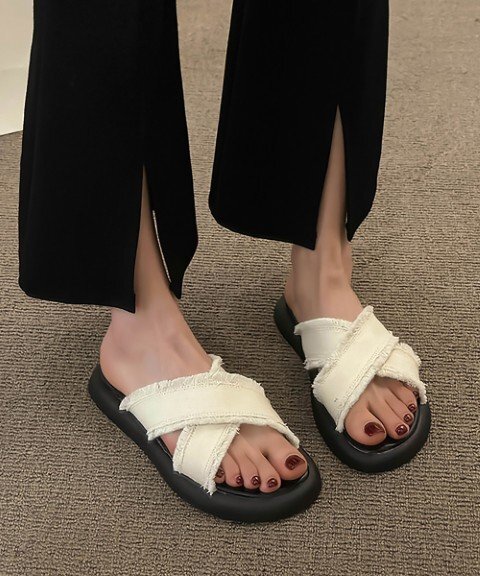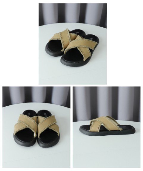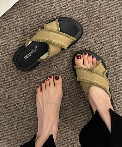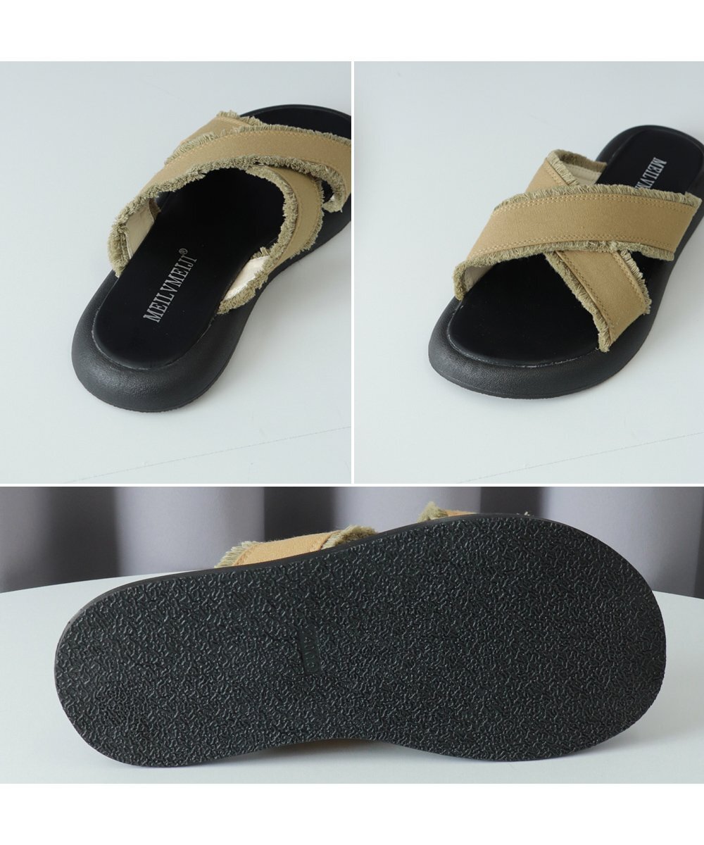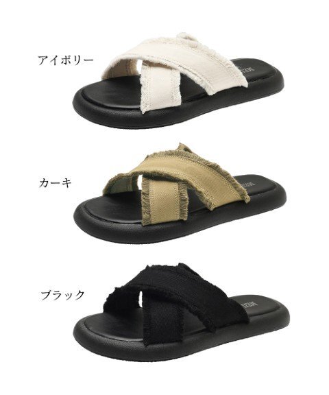 足元をすっきりと見せてくれるクロスベルトデザインのミュールサンダル。