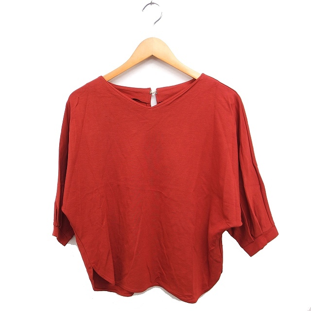 エムケー ミッシェルクラン MK MICHEL KLEIN Vネック カットソー Tシャツ 7分袖 ドルマン 無地 38 テラコッタ /FT41 レディース