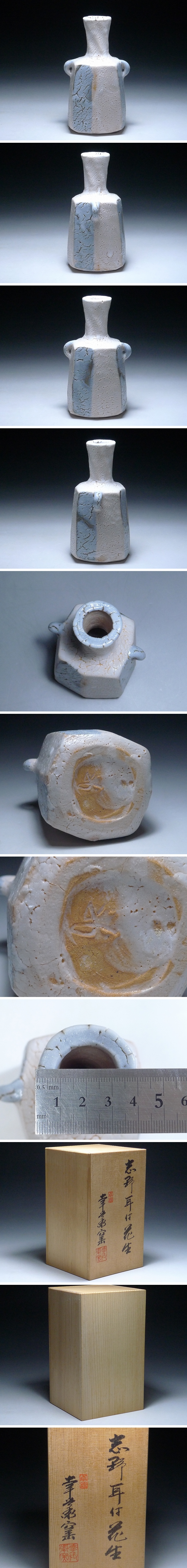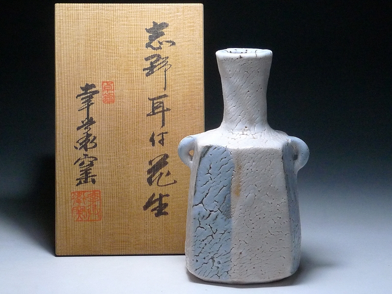 幸兵衛窯・志野耳付花生・志野焼・花器・花瓶・共箱付・在銘・陶器 茶道具華道具 伝統工芸 古美術