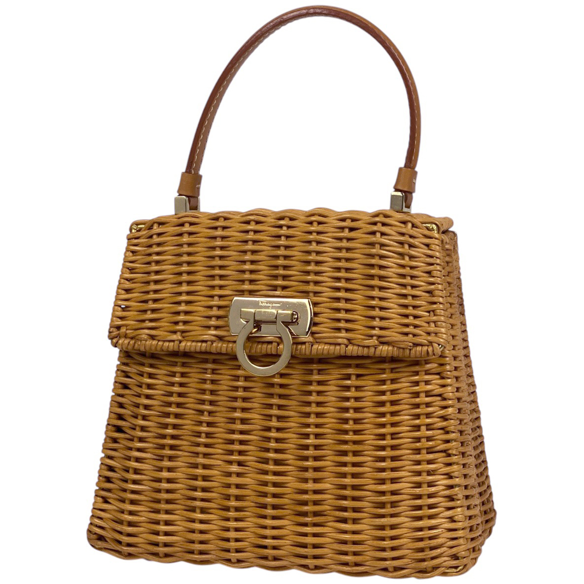 サルヴァトーレフェラガモ Salvatore Ferragamo ロゴ ハンドバッグ ガンチーニ ストロー かごバッグ ハンドバッグ ラフィア ブラウン 3403 レディース 【中古】 |