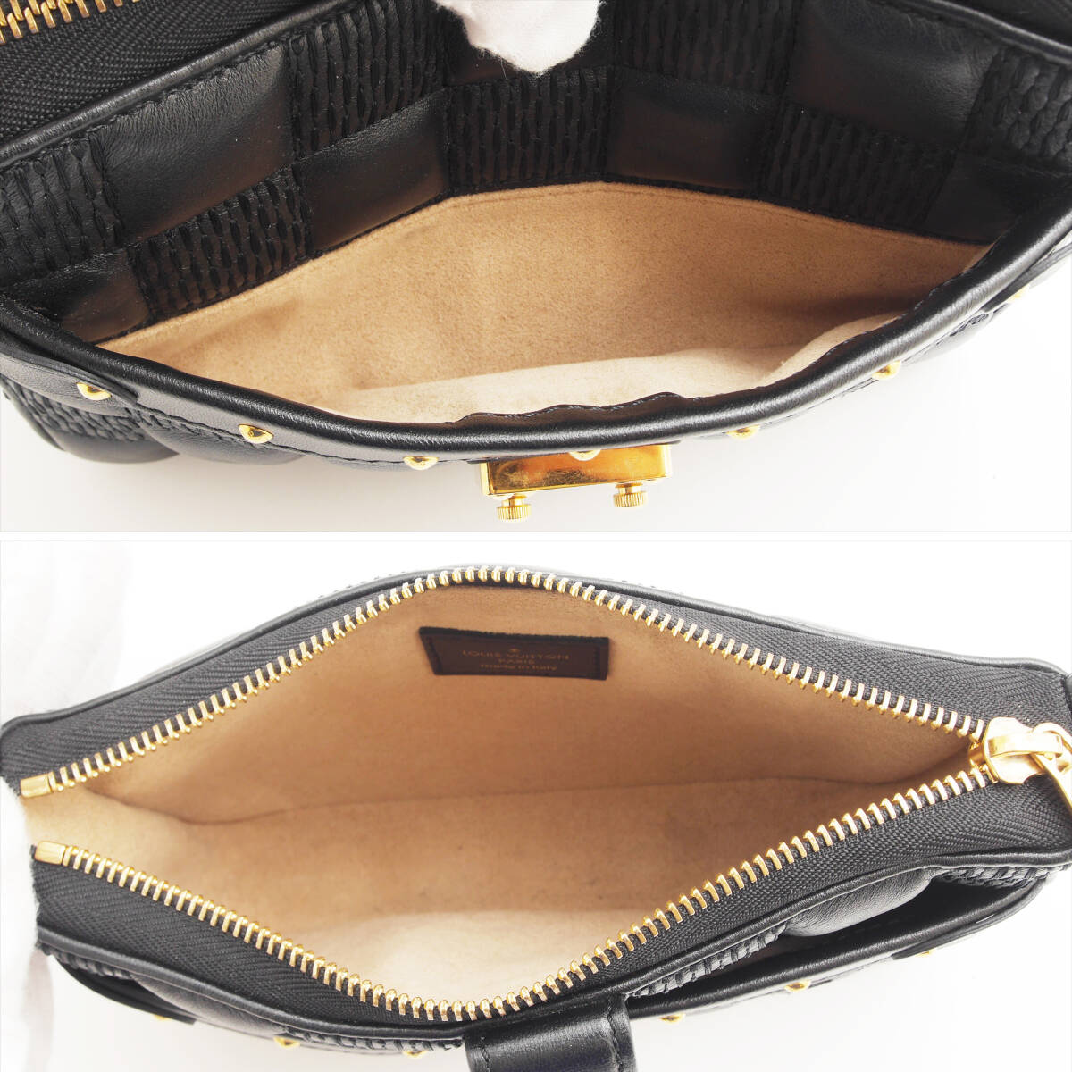 外側 | A | ●通常使用によるスレあるものの、ダミエ柄くっきり ●糸飛び・破れ無し ●金具ピカピカ ●ファスナー開閉スムーズ ●ロックパチッと閉まります ●型崩れの無い非常に美しい状態です |