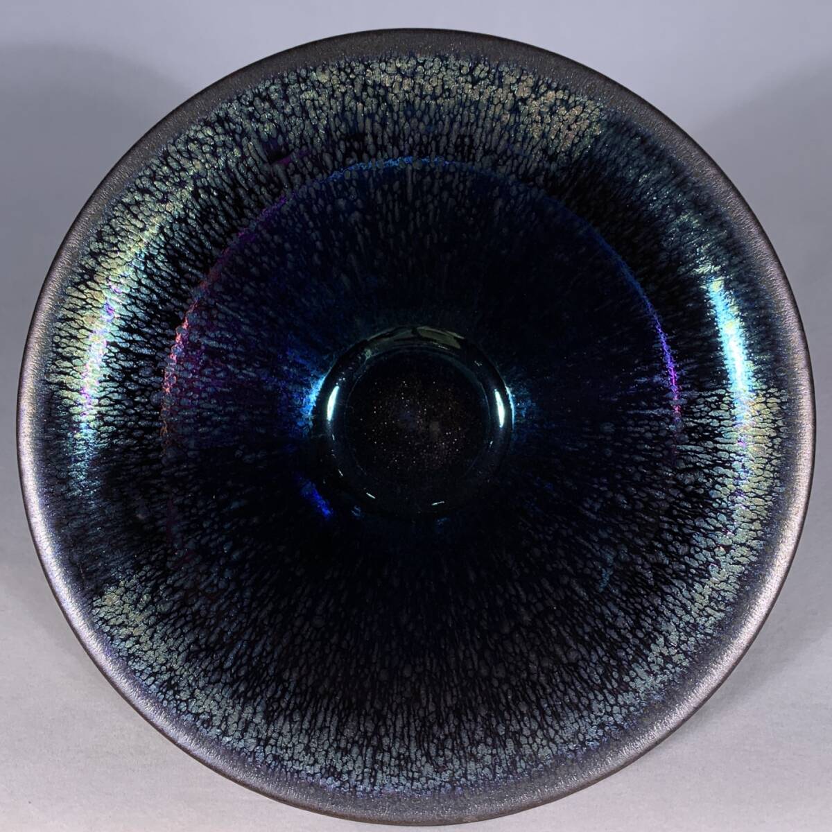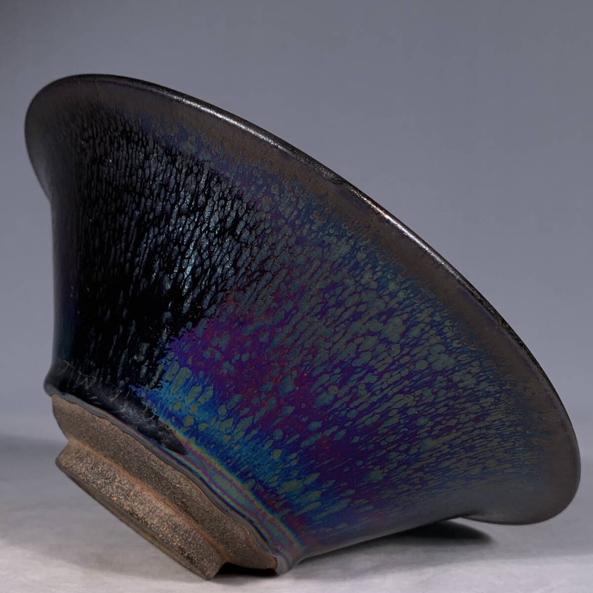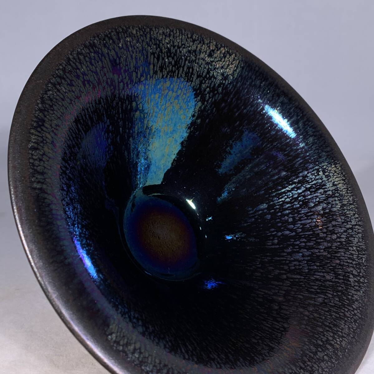 宋代風 古陶磁器 建窯 七彩光 油滴盞 斗笠盞 盃 建盞 茶盞 酒碗 供御款 陶芸 時代物 東洋彫刻 旧家蔵出し 唐物 中国古玩 古美術品