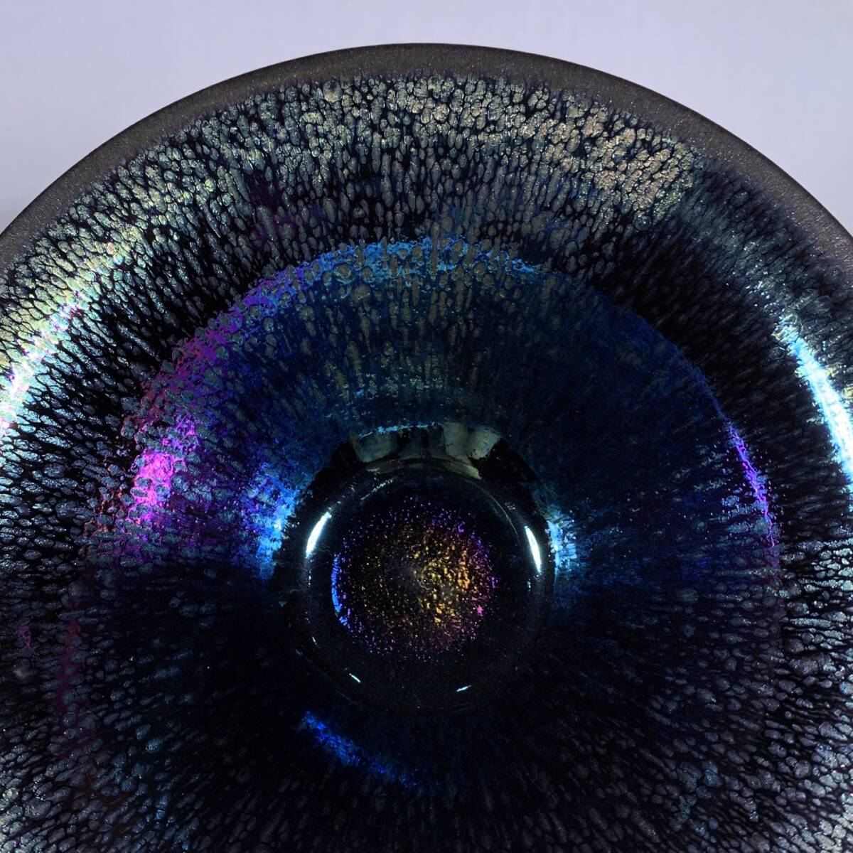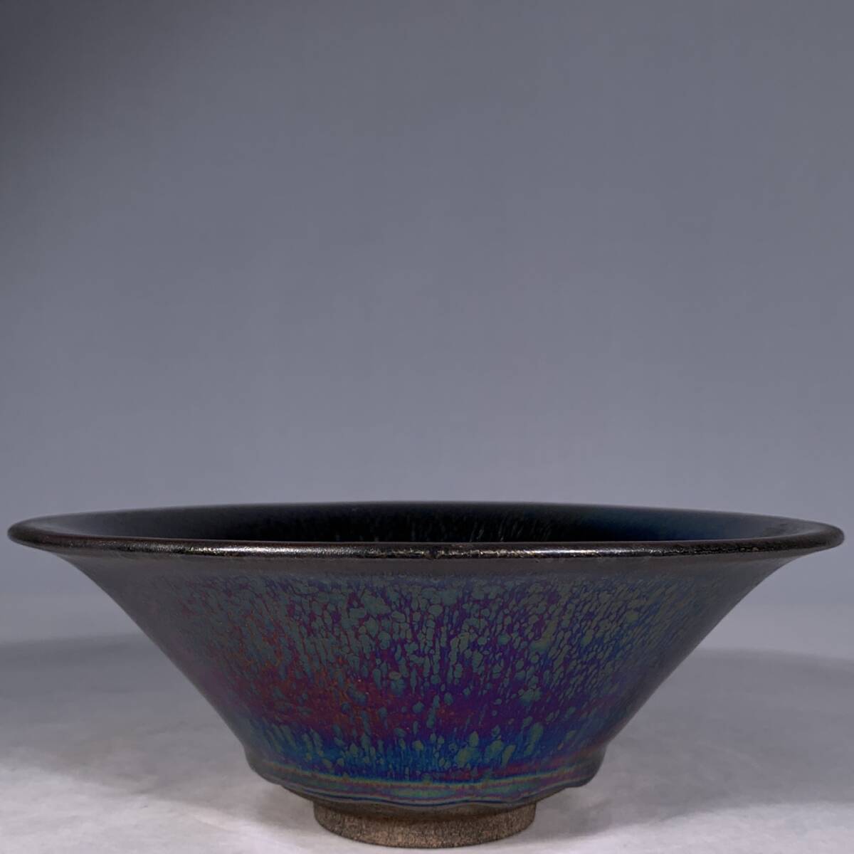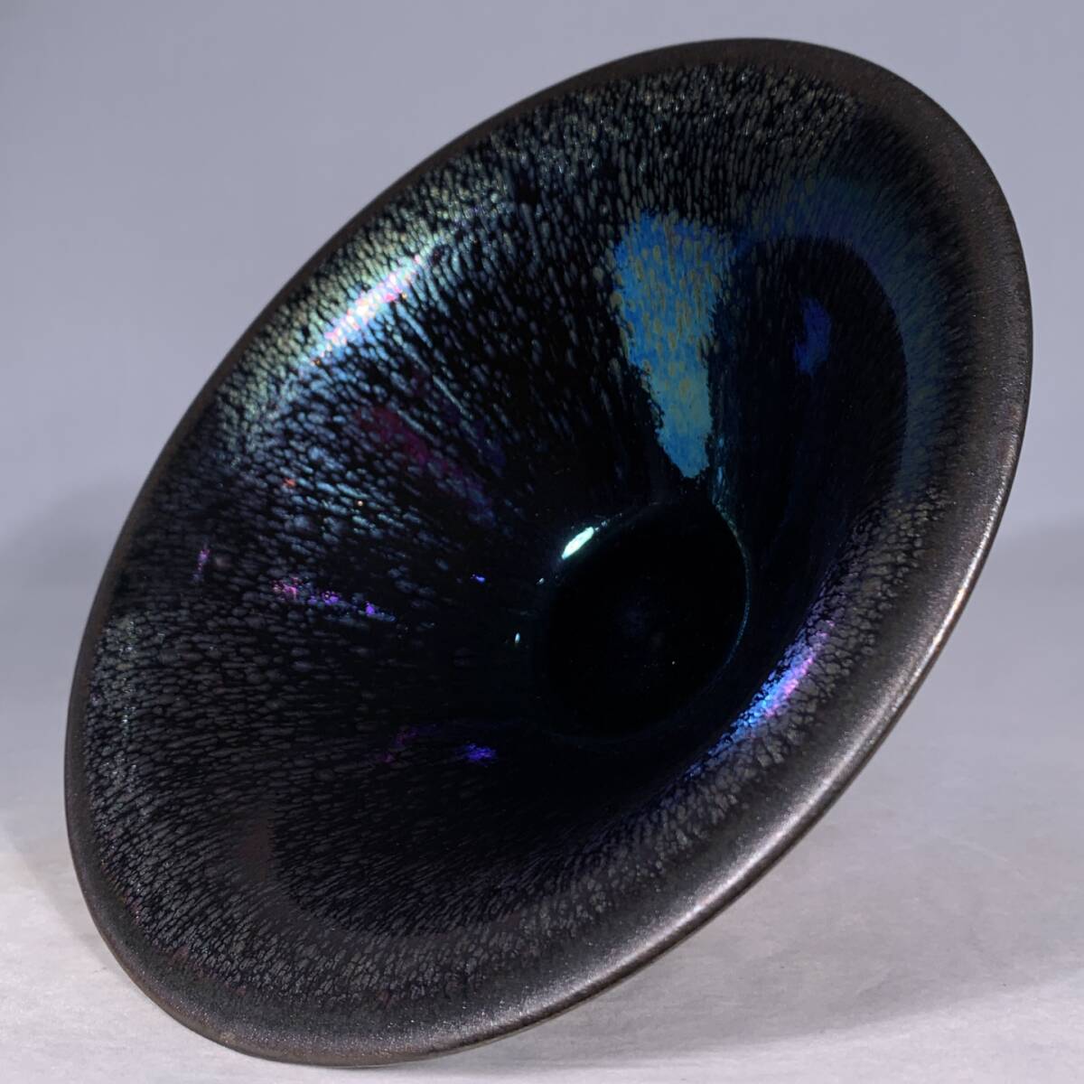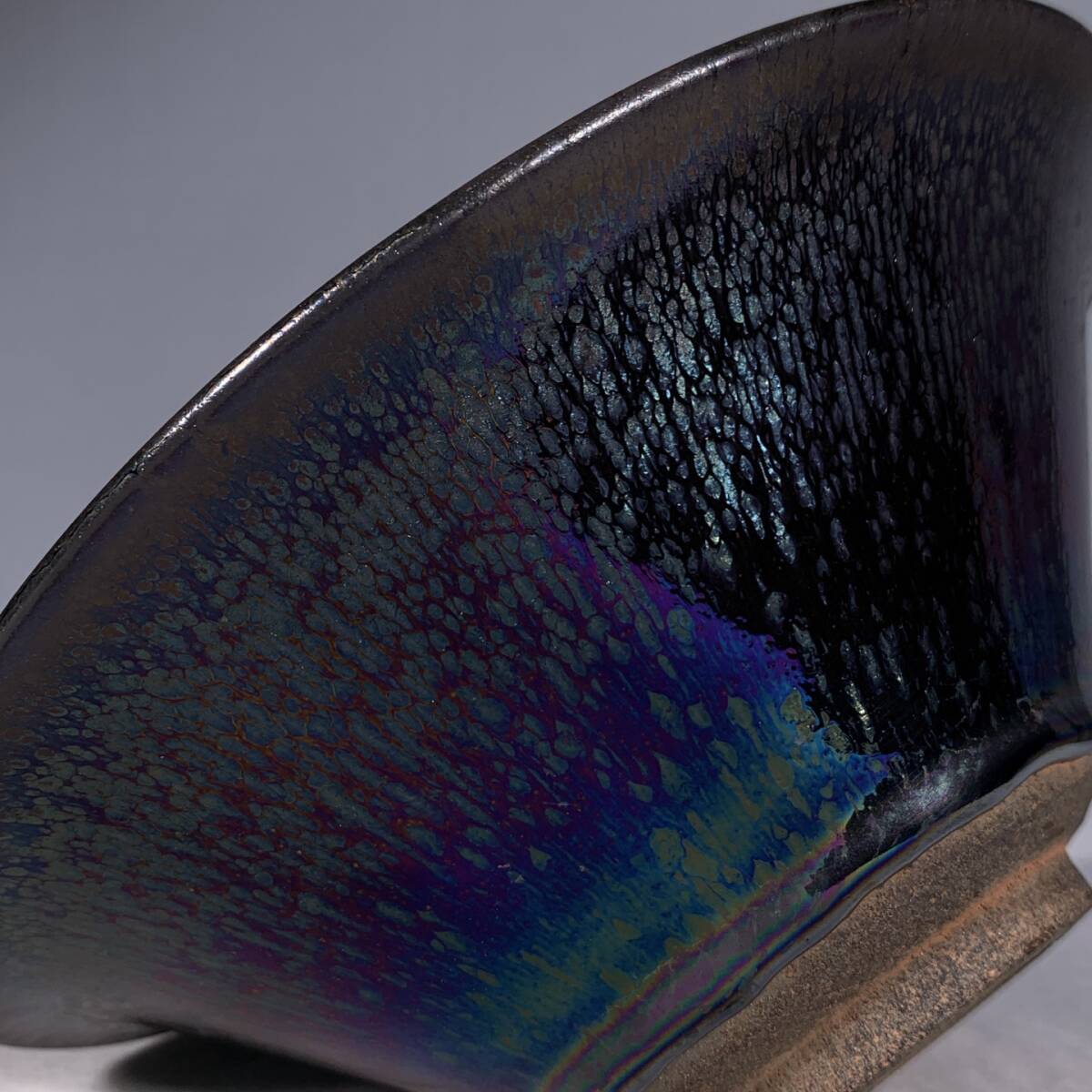 宋代風 古陶磁器 建窯 七彩光 油滴盞 斗笠盞 盃 建盞 茶盞 酒碗 供御款 陶芸 時代物 東洋彫刻 旧家蔵出し 唐物 中国古玩 古美術品