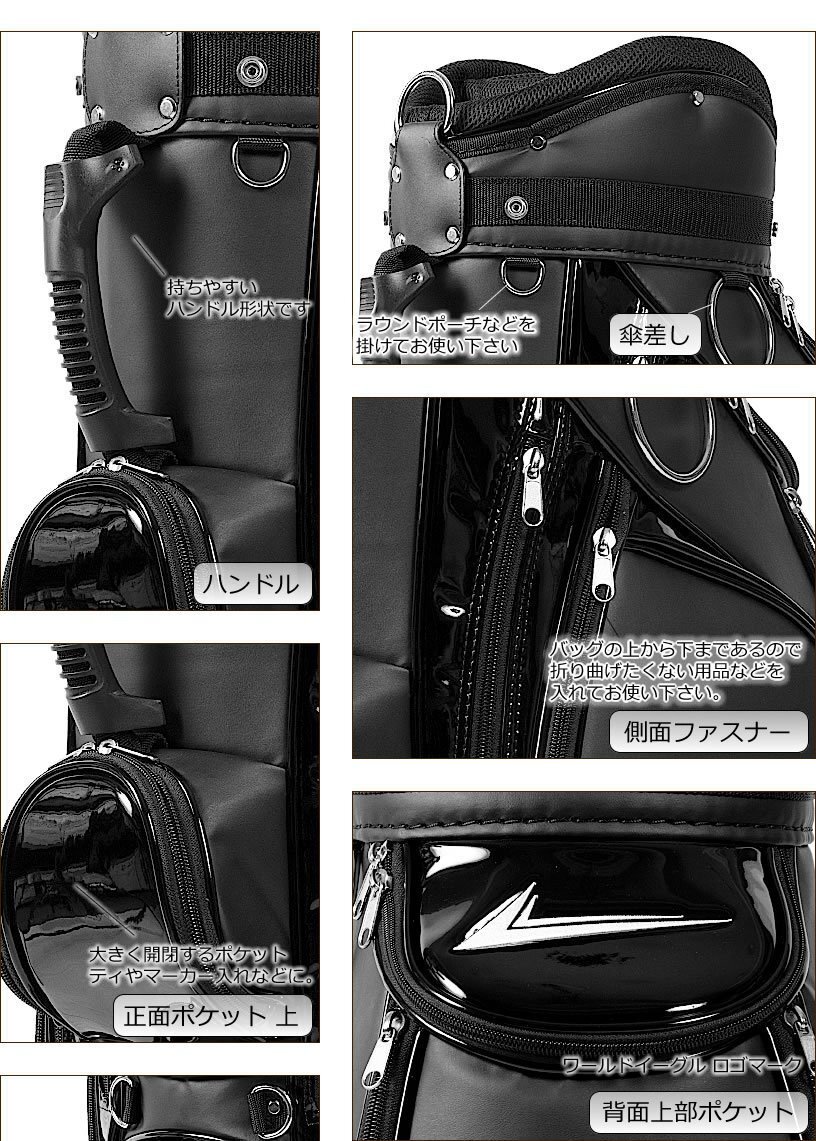 ワールドイーグル重厚感が溢れるCBX001 ゴルフバッグ ブラック[42158]