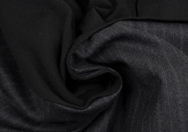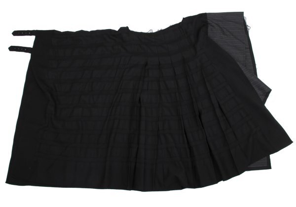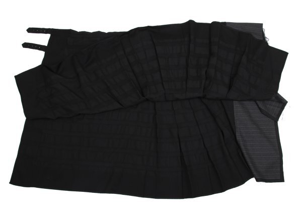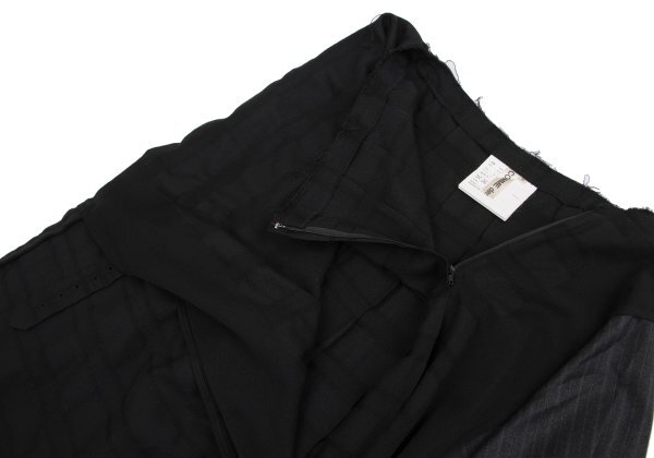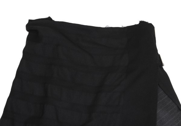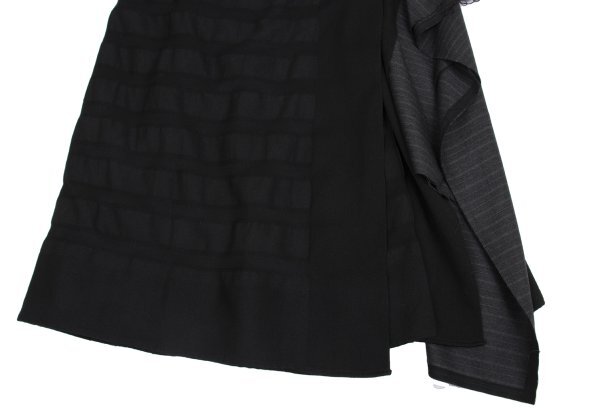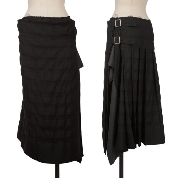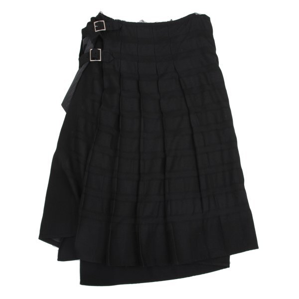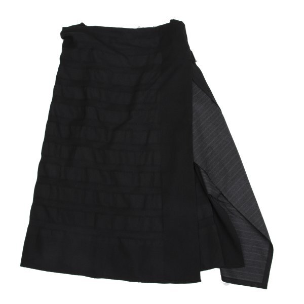 コムデギャルソンCOMME des GARCONS ハーフプリーツボーダー織りウールラップスカート 黒グレーS |
