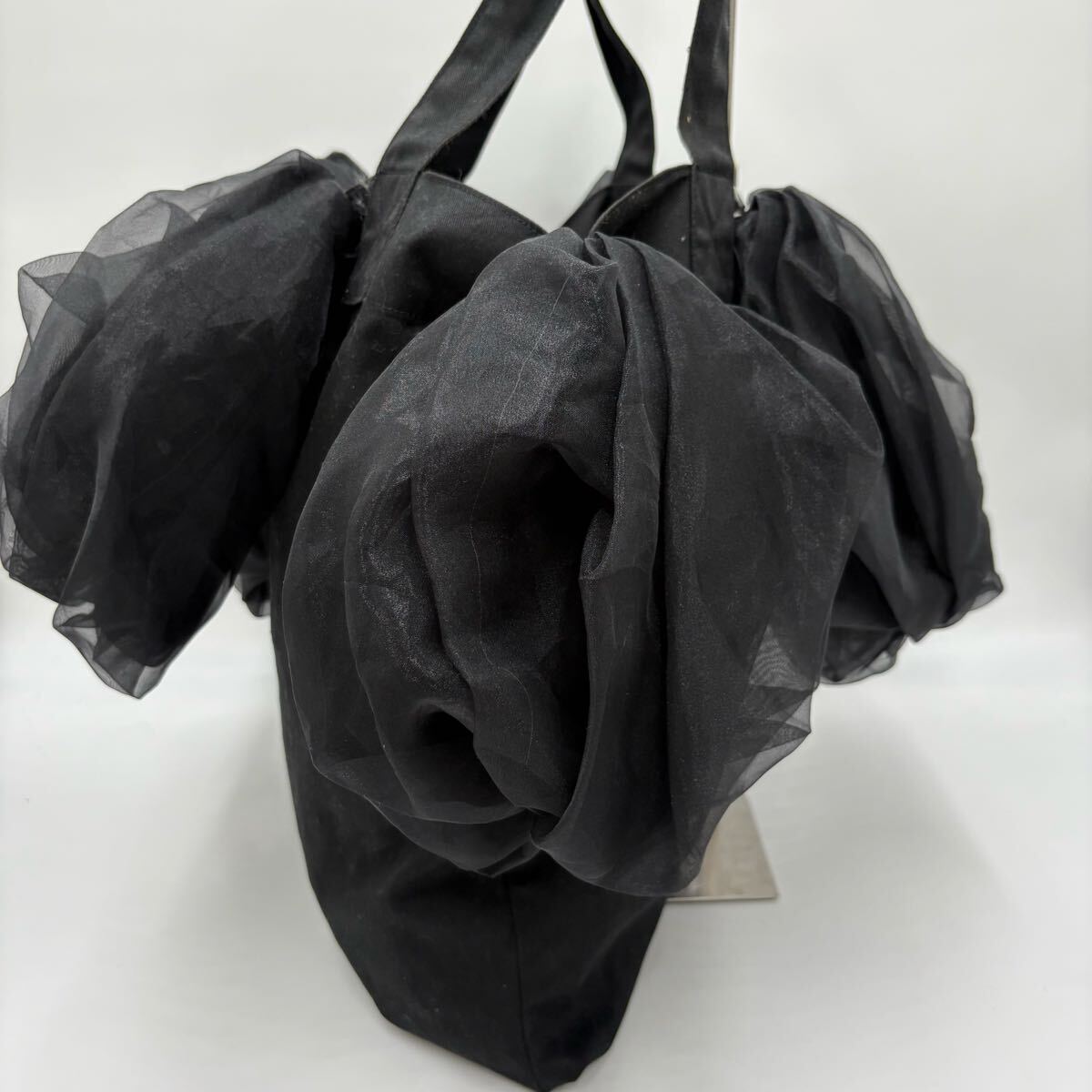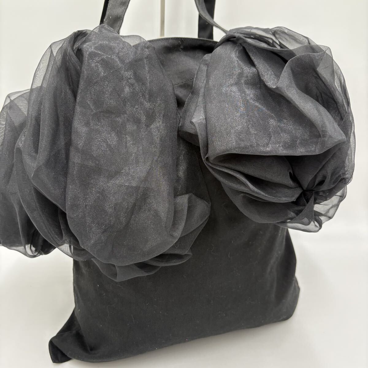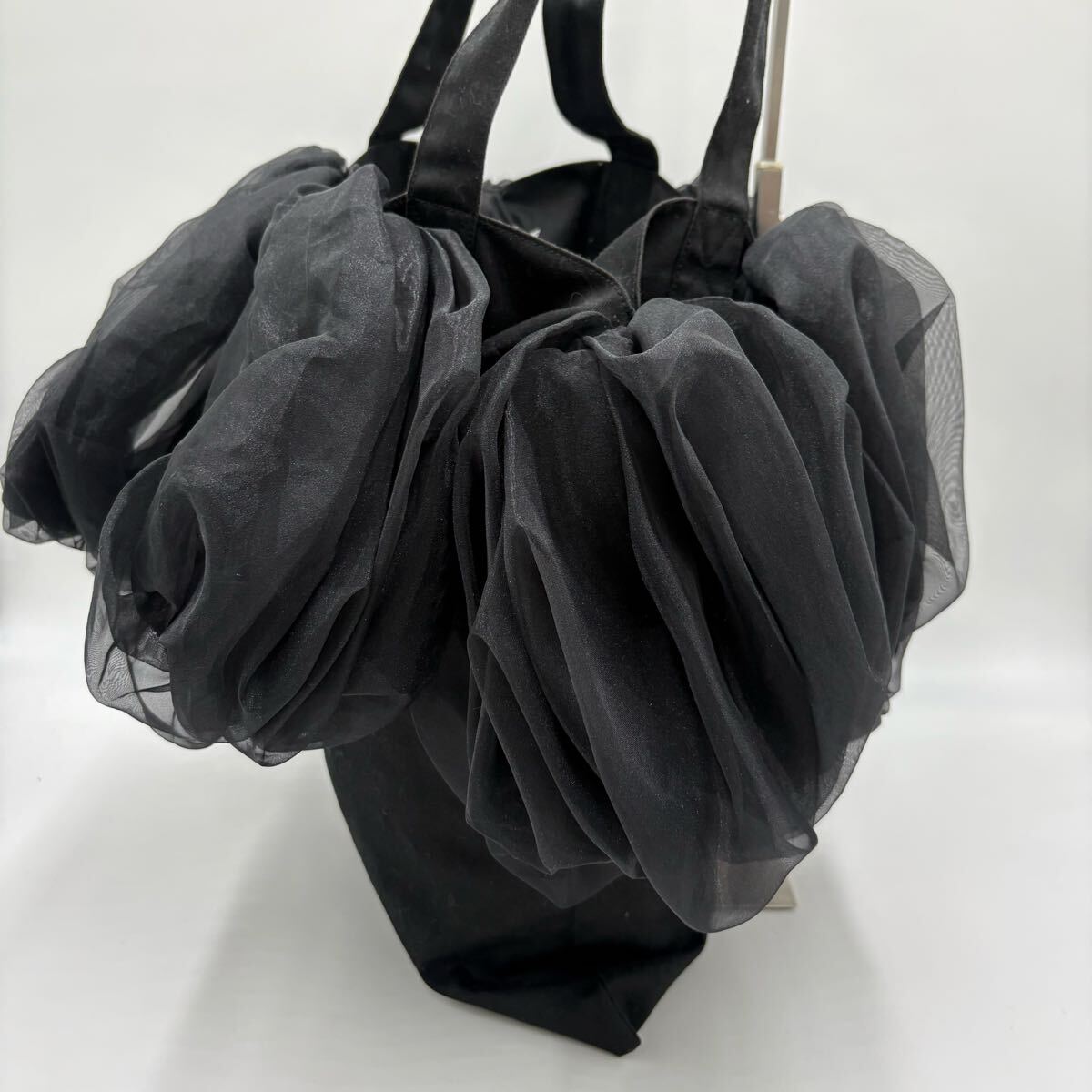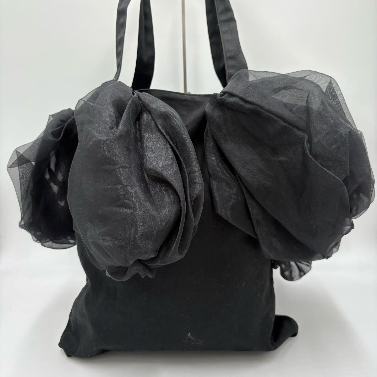 B ■ 洗練されたデザイン' 大容量収納' LUDLOW ラドロー ボンボン フリル付き トートバッグ 手提げ 肩掛け鞄 ハンドバッグ カバン 黒系