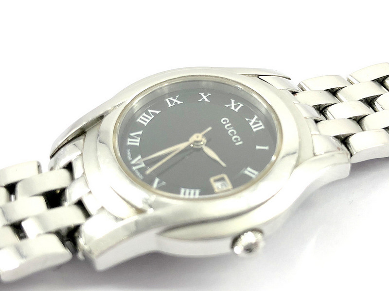 GUCCI グッチ デイト ブラック シルバー SS クォーツ 腕時計 時計 5500L レディース 電池交換済み 稼働品 中古を出品させていただきました。
