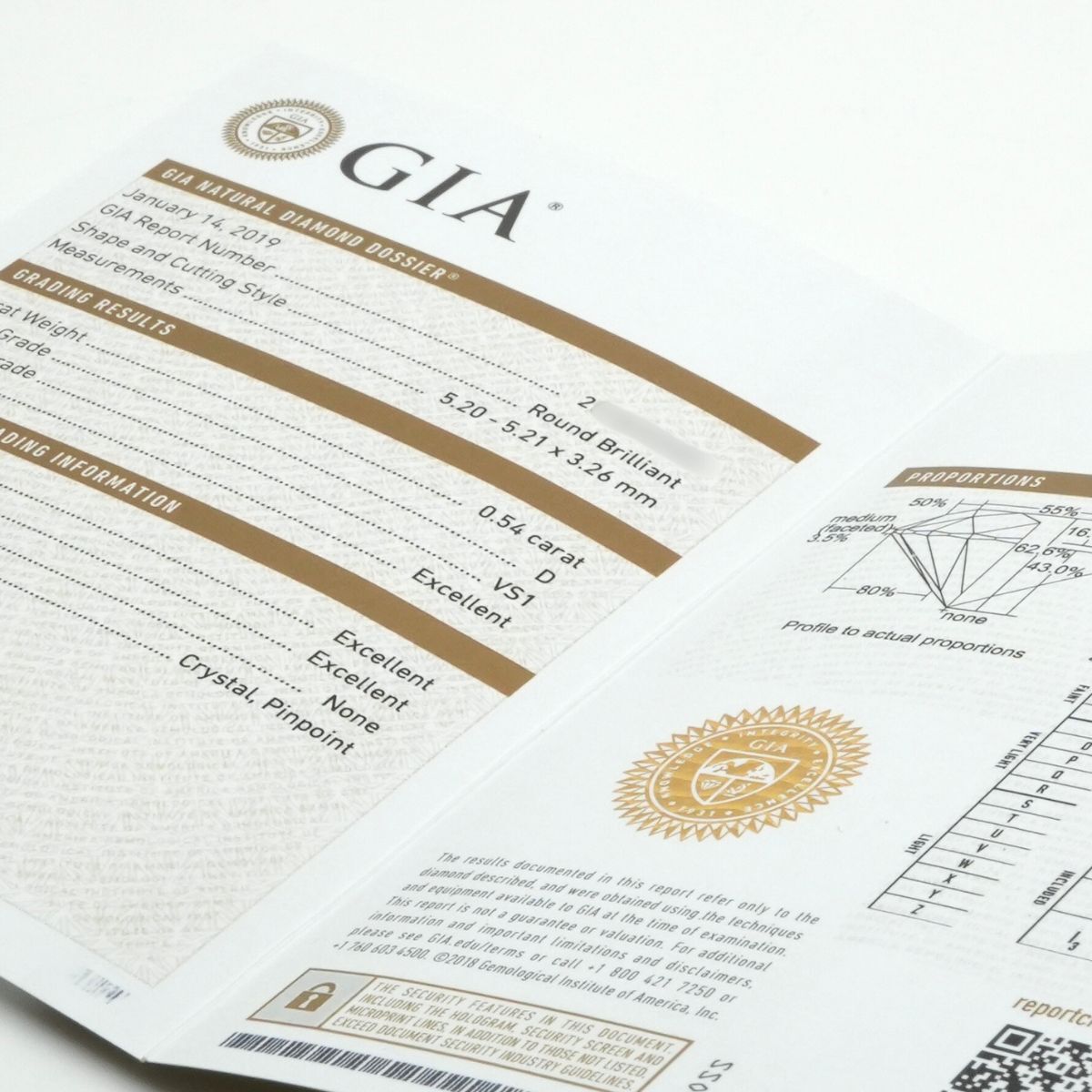 | 宝石 | ダイヤモンド カラット 0.54ct カラー D クラリティ VS1 カット EXCELLENT ポリッシュ EXCELLENT シンメトリー EXCELLENT 蛍光性 NONE |