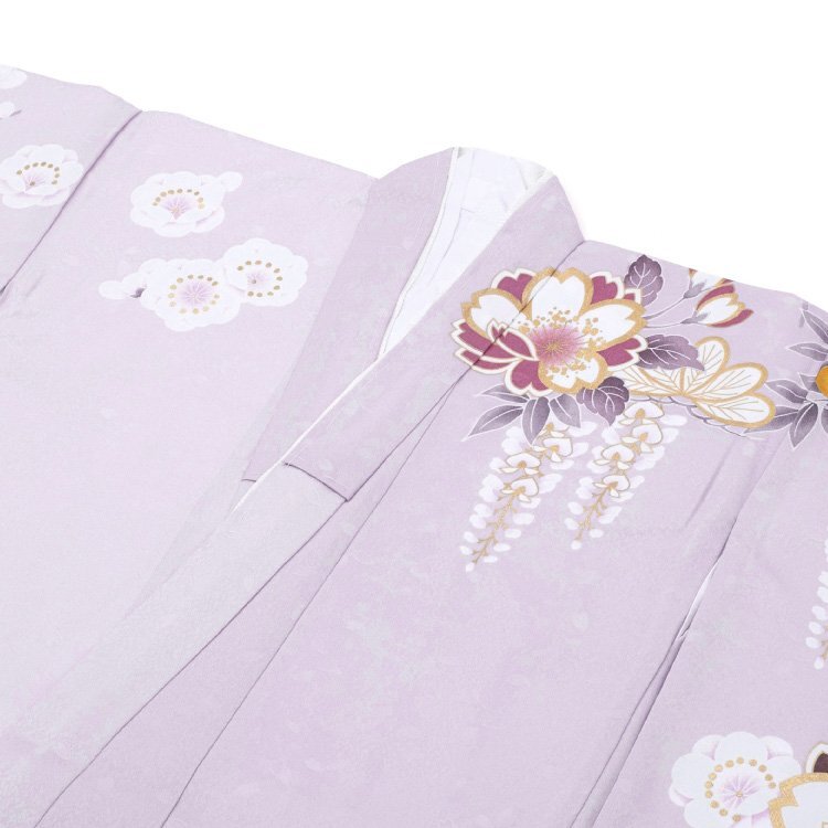 素材 | 着物表地 : ポリエステル 100% 着物裏地 : ポリエステル 100% 長襦袢 : ポリエステル 100% 結び帯 : ポリエステル 100% 帯揚げ :ナイロン 100% しごき : ポリエステル 100% |