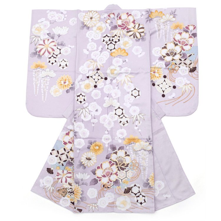 サイズ | 対象年齢 : 6歳・7歳・8歳 対応身長 : 対応身長 約110cm~135cmくらい 着物 : 身丈 約131cm / 袖丈 約76cm / 裄丈 約57cm 草履 : 約21cm 足袋 : 19-20cm 事前にご連絡いただければ、別のサイズに変更も可能です。お気軽にお問合せください。その他の足袋のサイズは、15cm~16cm・17cm~18cm・21cm~22cm となります。 |