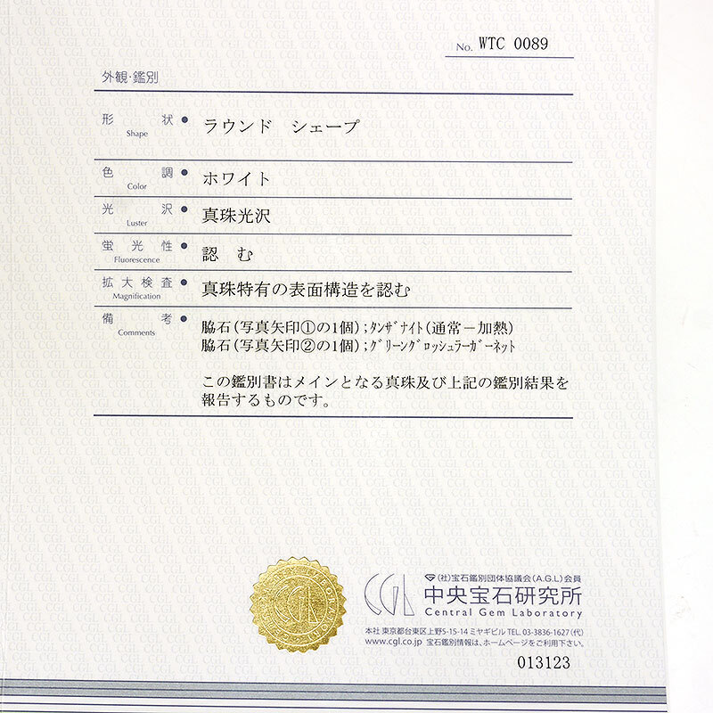 付属品:鑑別書(中央宝石研究所)