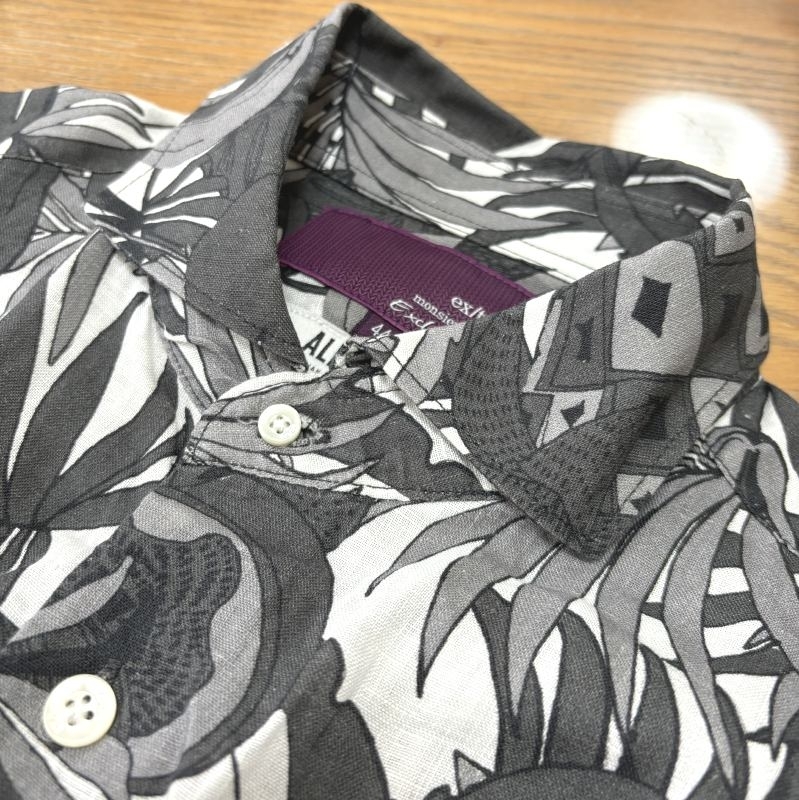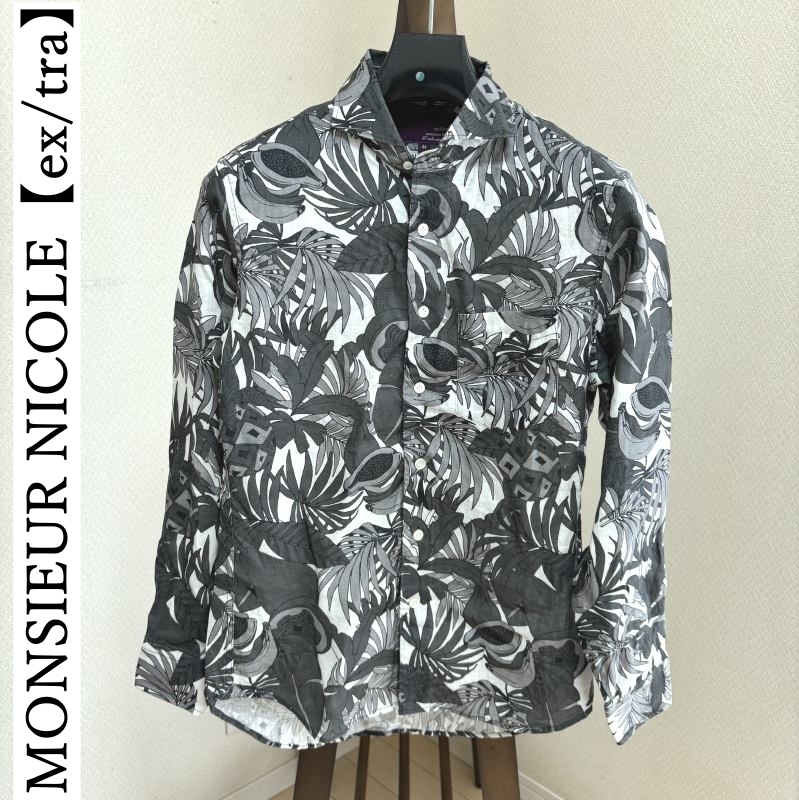 ムッシュニコルエクストラ メンズ リネンシャツ ボタニカルプリント。