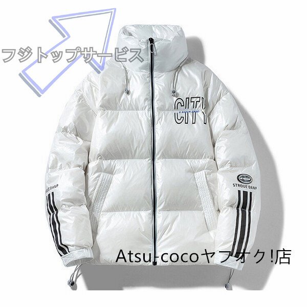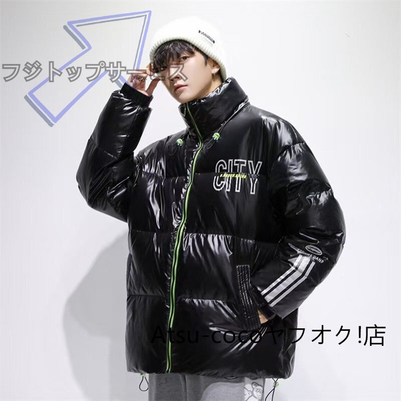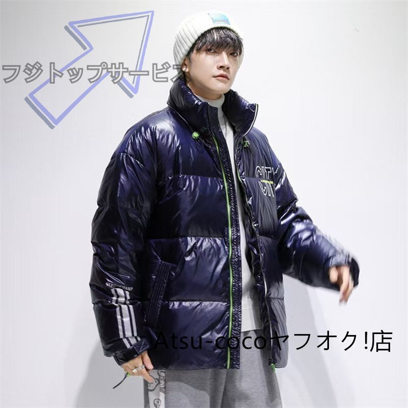 ブラック ダウンジャケット メンズ ダウン 軽量 暖かい 防寒 おしゃれ プリント ジャンパー ブルゾン キルティング 防寒着 撥水