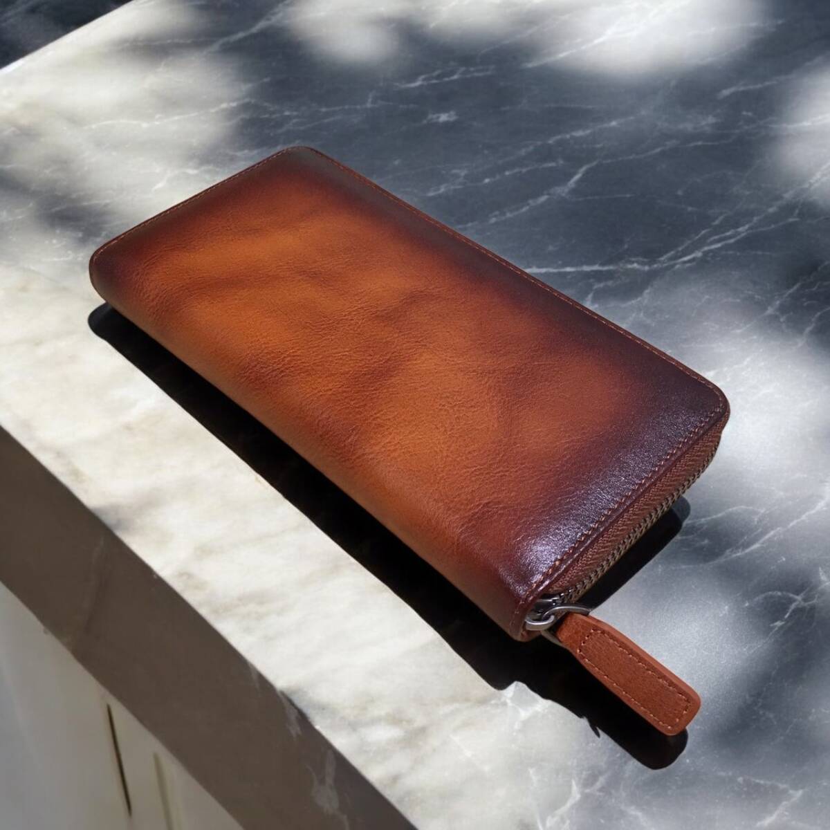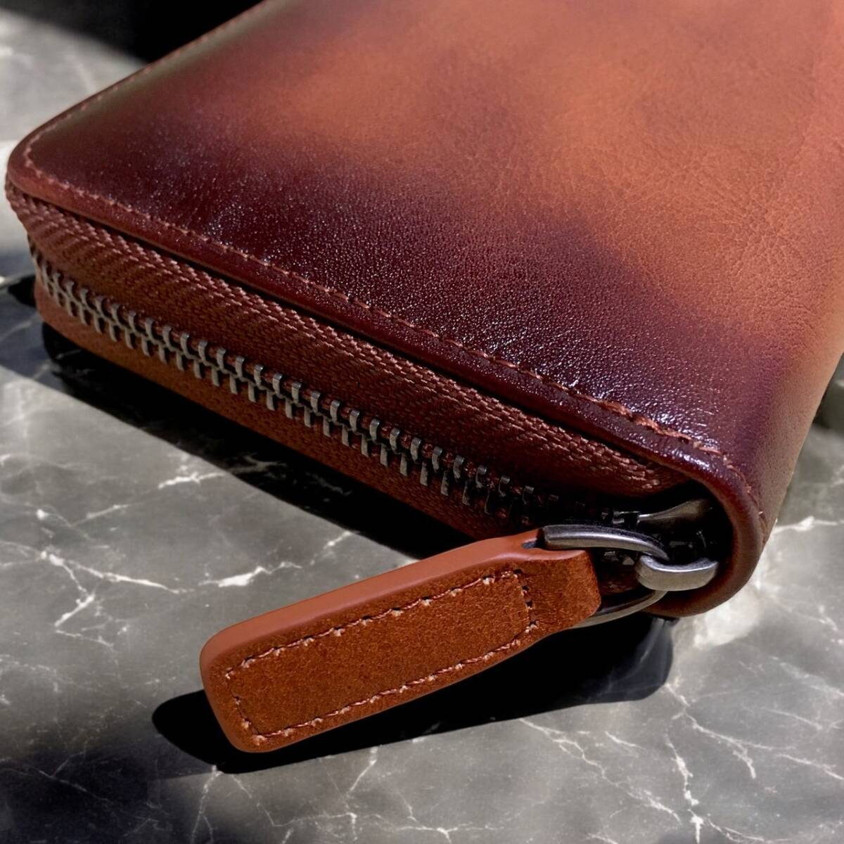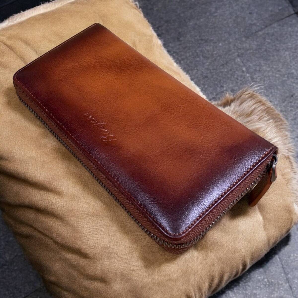 茶色グラデーションの渋いカラーリングがかっこいい牛革長財布♪