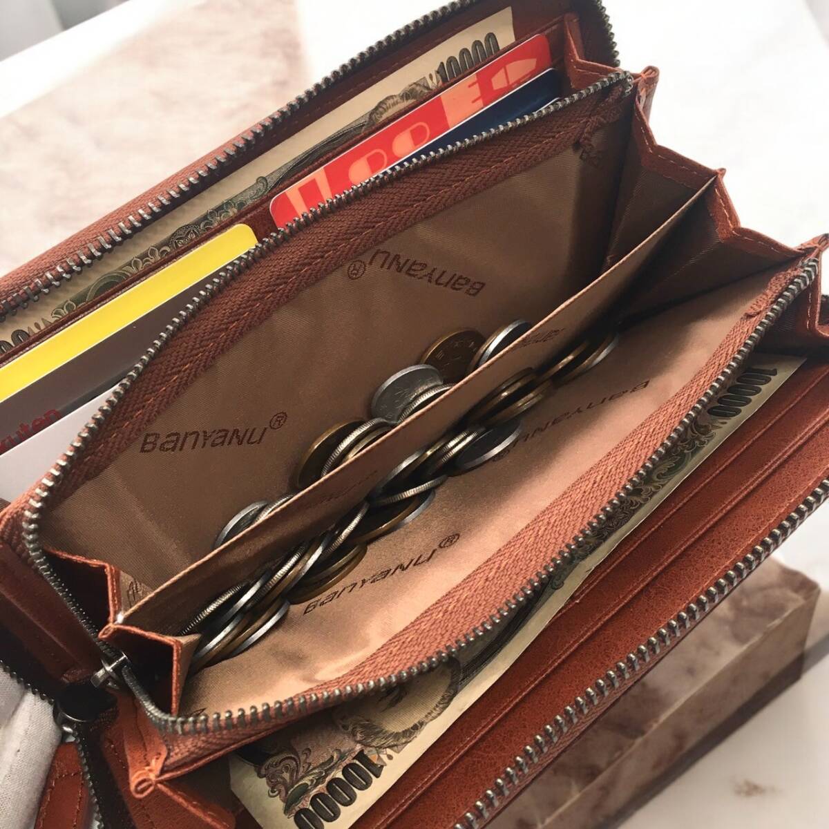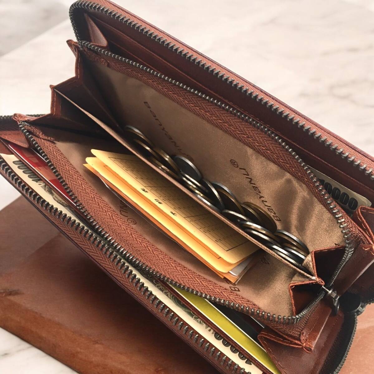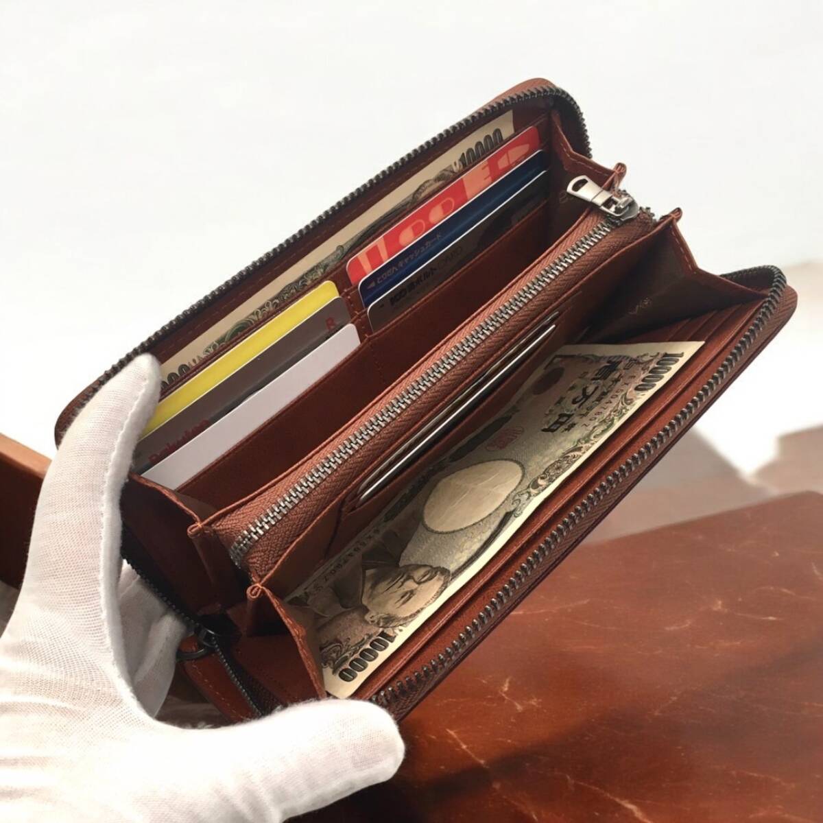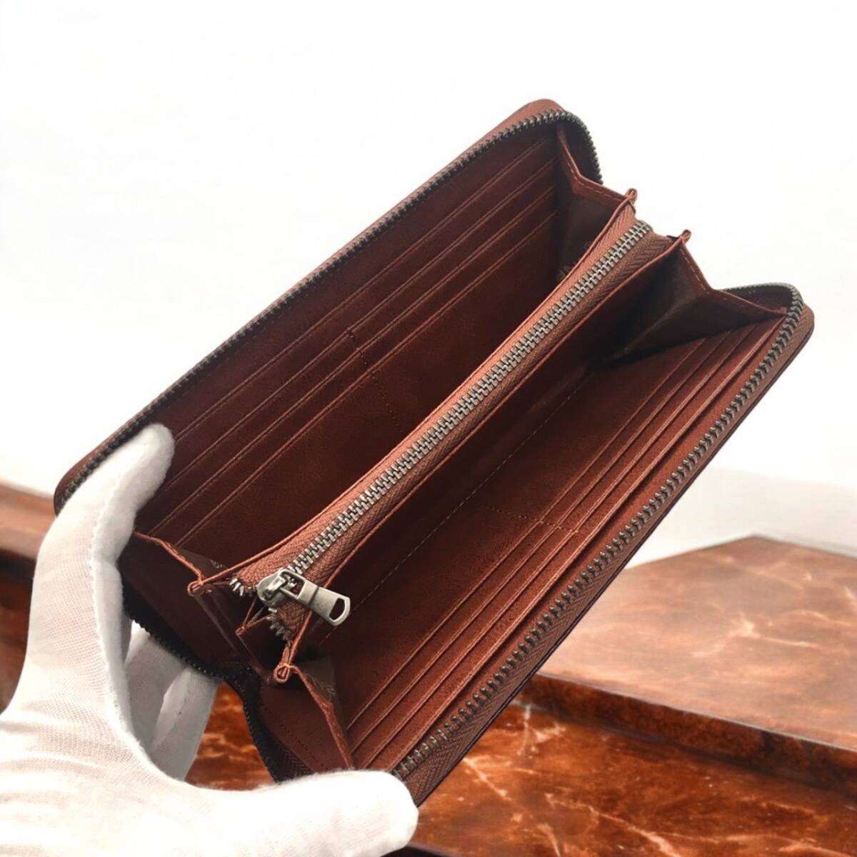 長財布 牛革 メンズ レディース 大容量 カードケース コインケース 茶