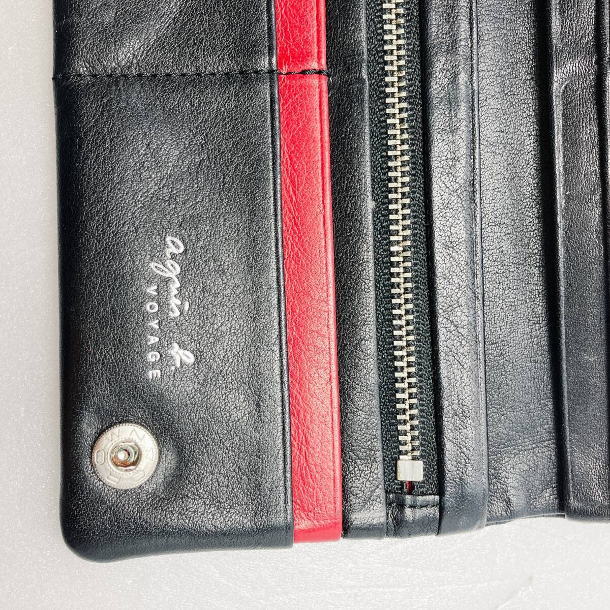 ZA115○ Agnes b. VOYAGE アニエスベー ボヤージュ 長財布 ロングウォレット ブラック 黒 赤 レッド レザーウォレット 星 スター