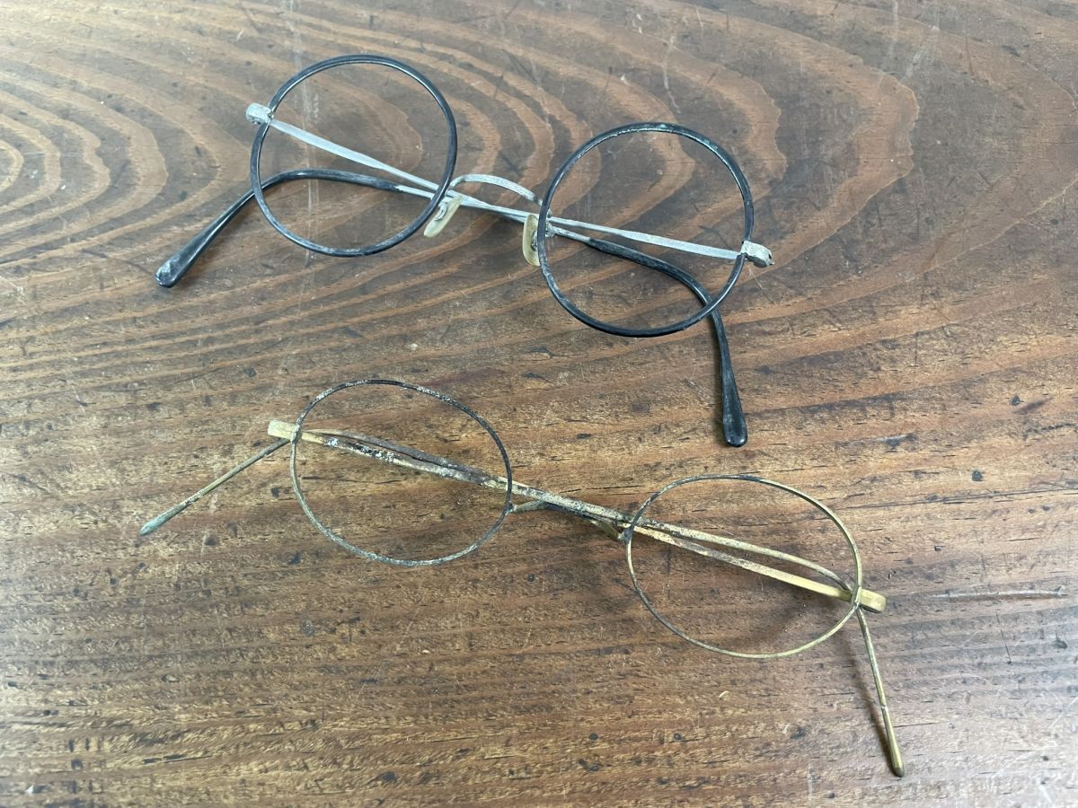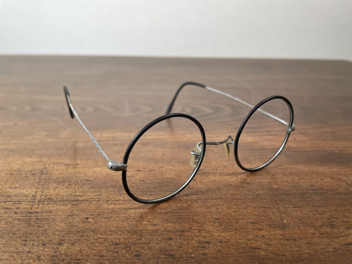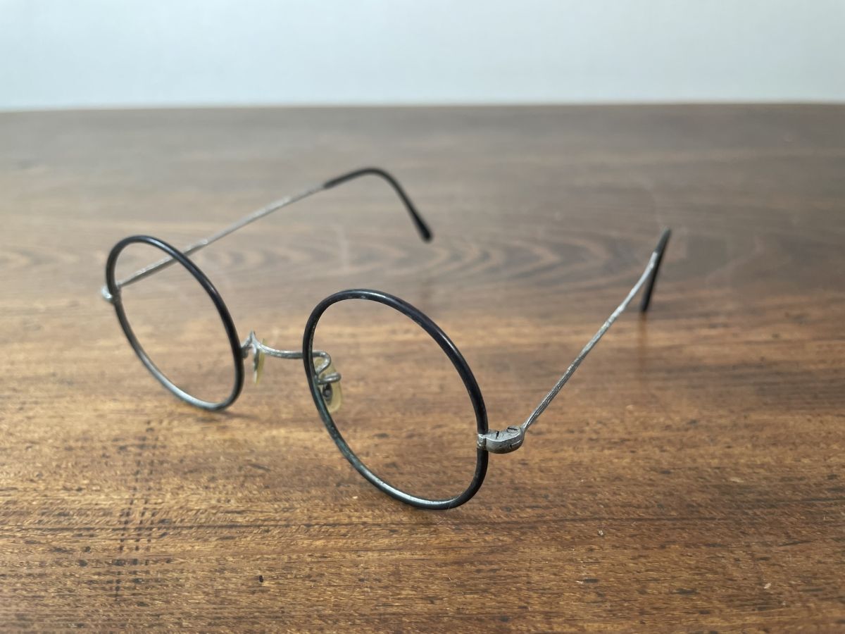 A521 メガネフレーム2点 金色 銀黒色 巻きつるテンプル 丸眼鏡 メガネ 大正 昭和 レトロ アンティーク ヴィンテージ レンズなし
