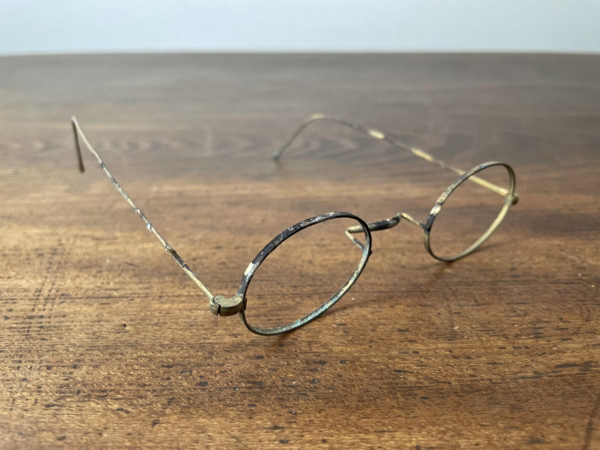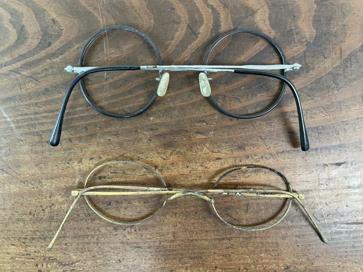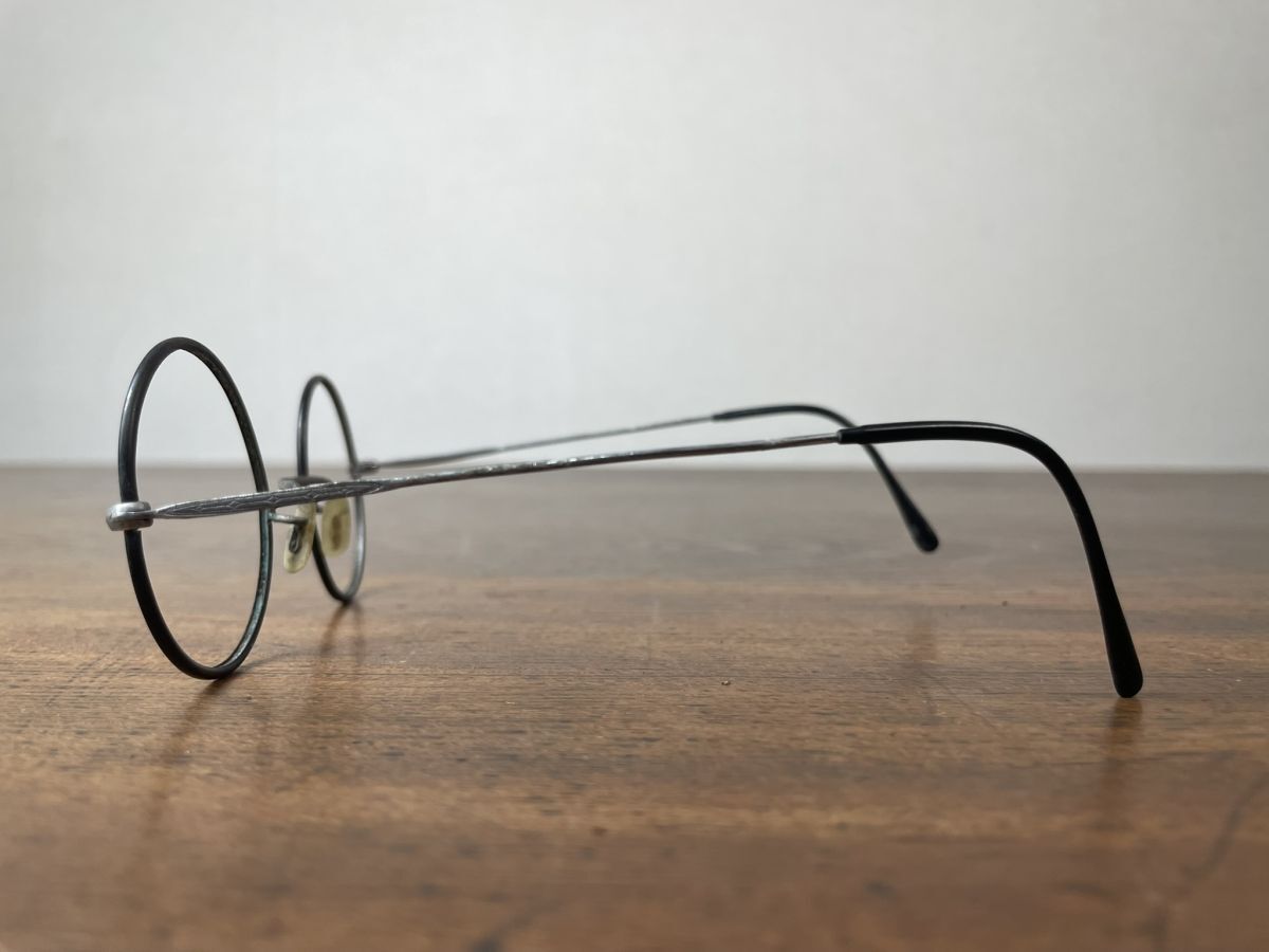A521 メガネフレーム2点 金色 銀黒色 巻きつるテンプル 丸眼鏡 メガネ 大正 昭和 レトロ アンティーク ヴィンテージ レンズなし
