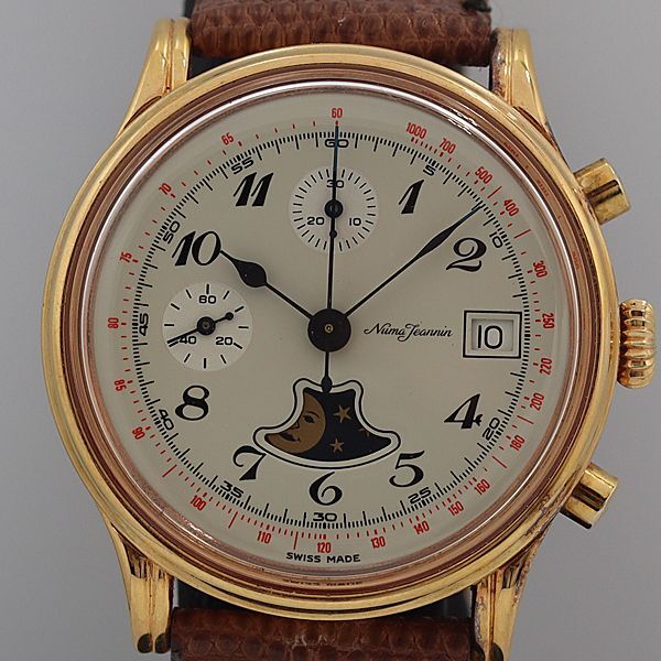 デッドストック級 稼働 良品 ヌマジャナン クロノ ムーンフェイズ デイト シルバー文字盤 AT/自動巻 メンズ腕時計 OGH 5454ABC0583700