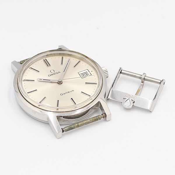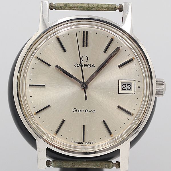 デッドストック級 稼働 良品 オメガ ジュネーブ デイト シルバー文字盤 手巻 トップのみ メンズ腕時計 OGH 19ABC5501000