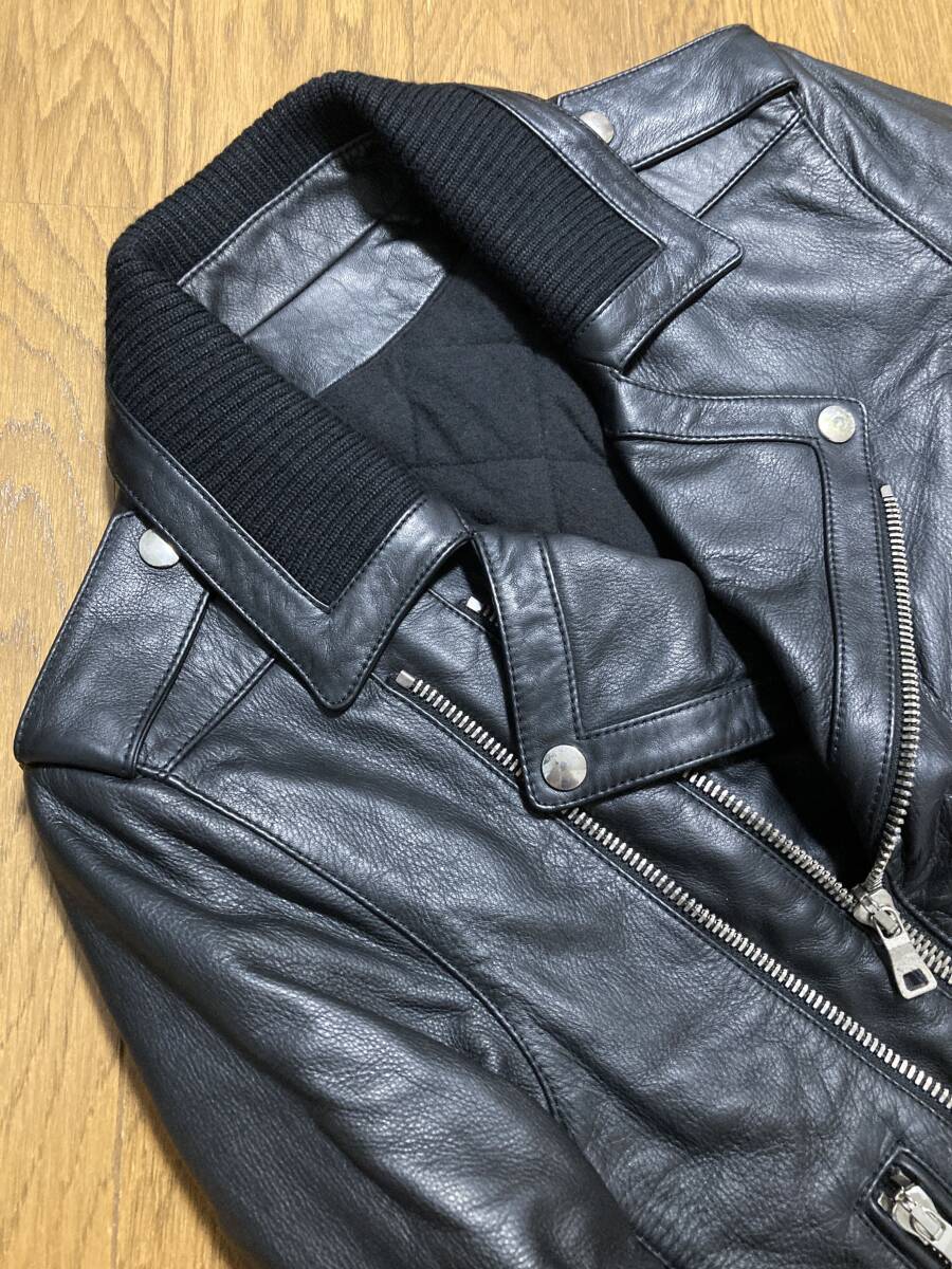 美品☆[BALMAIN HOMME] 15AW CLASSIC BIKER RIDERS ツイントラック ダブルライダース バイカーレザージャケット 44 牛革 W5HC844D184 ブラック 中綿 バルマンオム