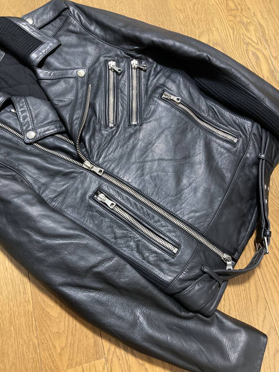 美品☆[BALMAIN HOMME] 15AW CLASSIC BIKER RIDERS ダブルライダース バイカーレザージャケット 44 牛革 W5HC844D184 中綿 バルマンオム