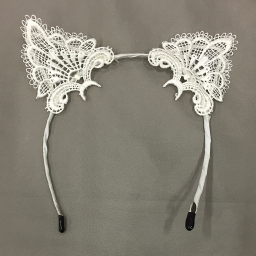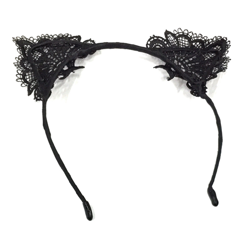 送料360円 ブランド不明 レース 猫耳 ネコミミ カチューシャ ブラック 他 ホワイト 含 計2点 セット 同梱NG |