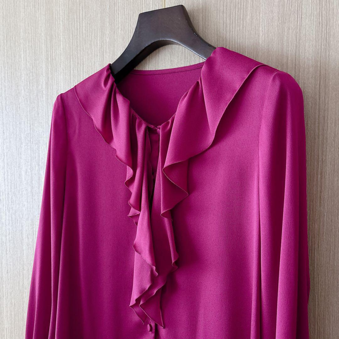 【238】アナイ サテンアムンゼンラッフルタイ ブラウス ピンク 36