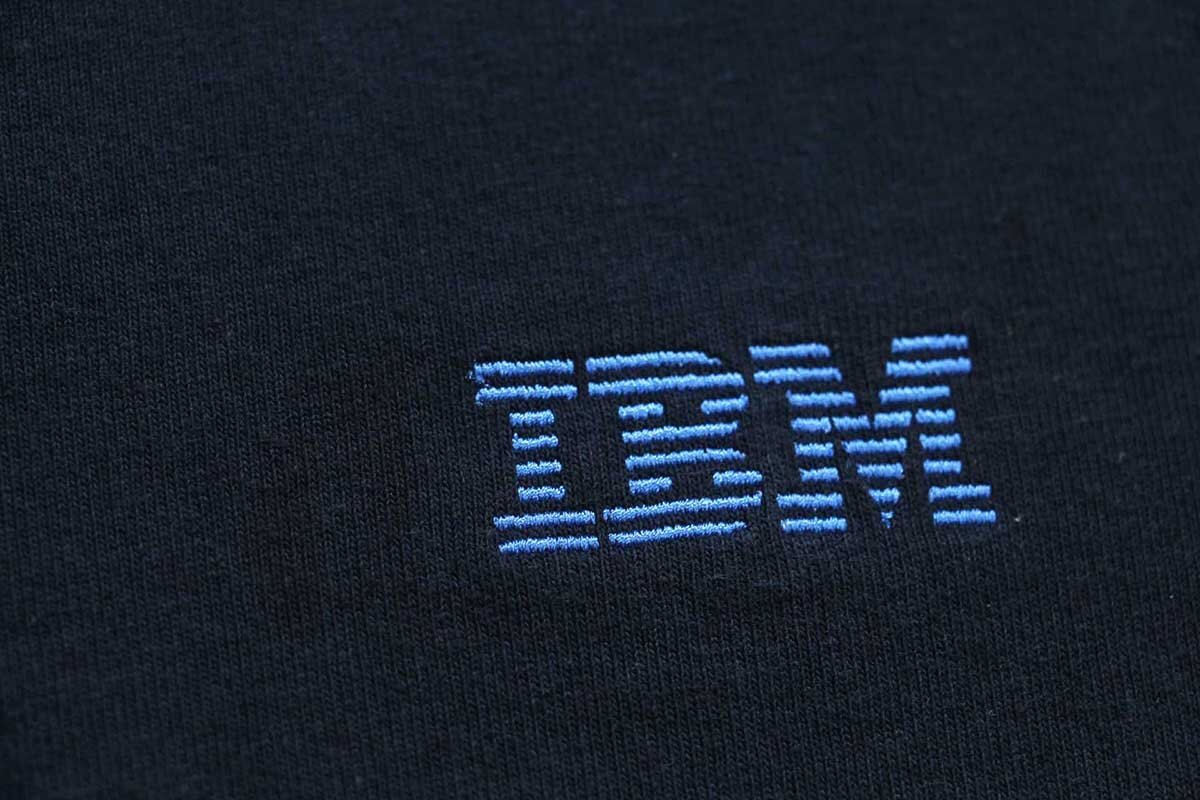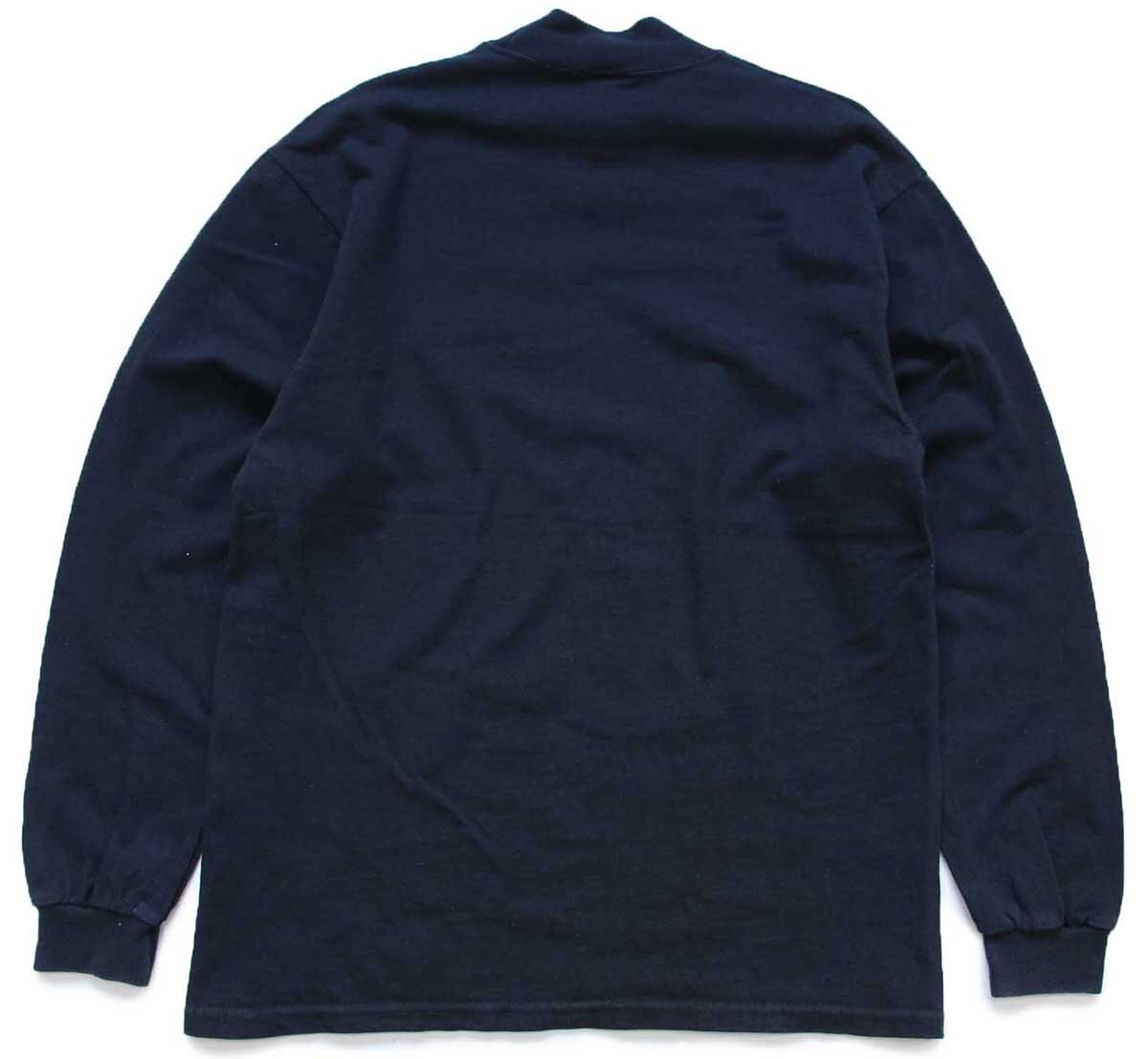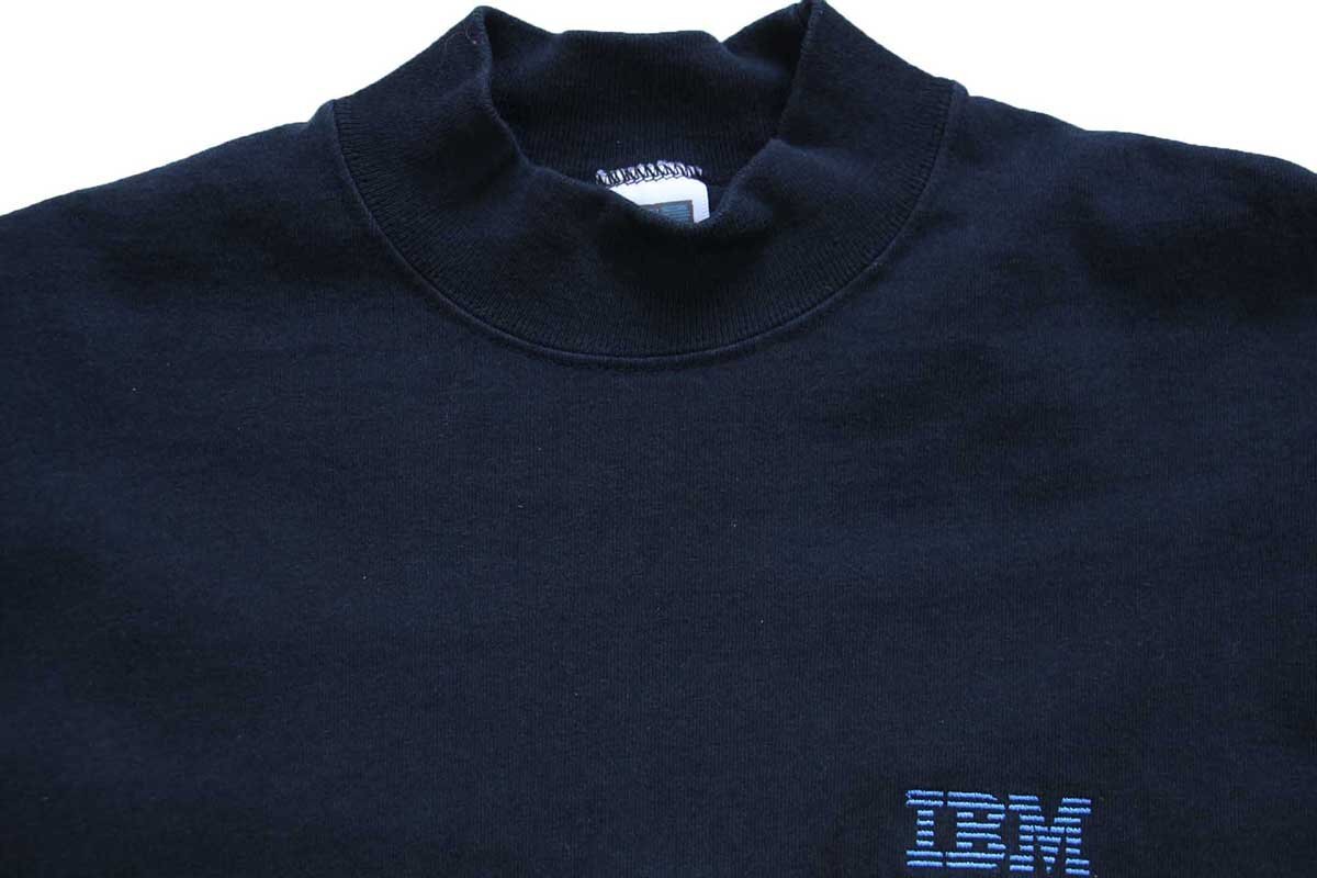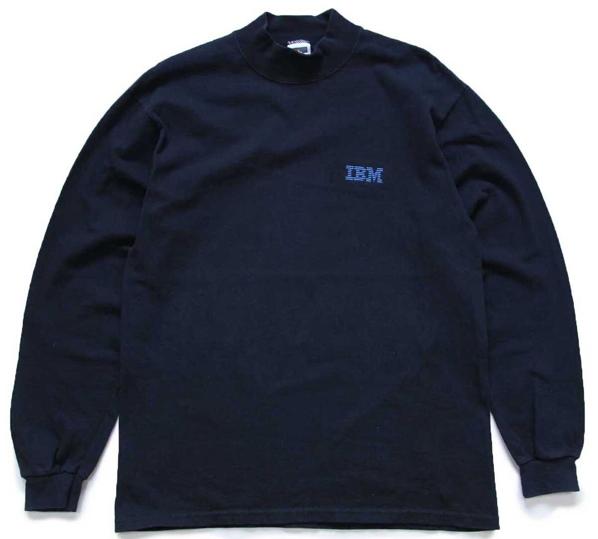 ★90s IBM ロゴ刺繍 モックネック コットン 長袖Tシャツ 黒 M★オールド ビンテージ カットソー ブラック ハイネック パソコン