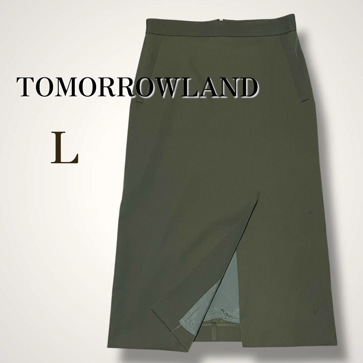 上品なカーキカラーが大人っぽい印象の、TOMORROWLANDのタイトスカートです。