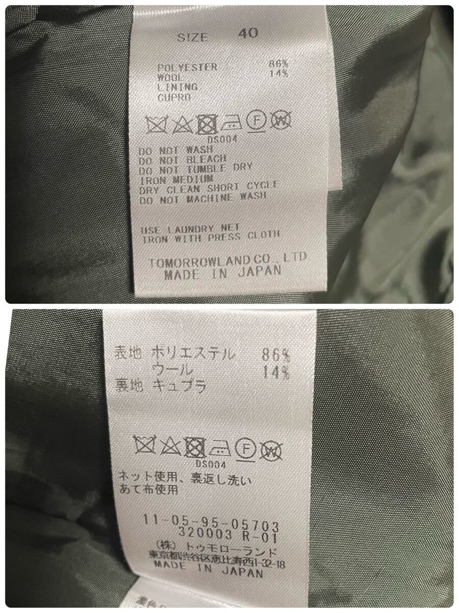 素材:ポリエステル86%、ウール14%、裏地キュプラ