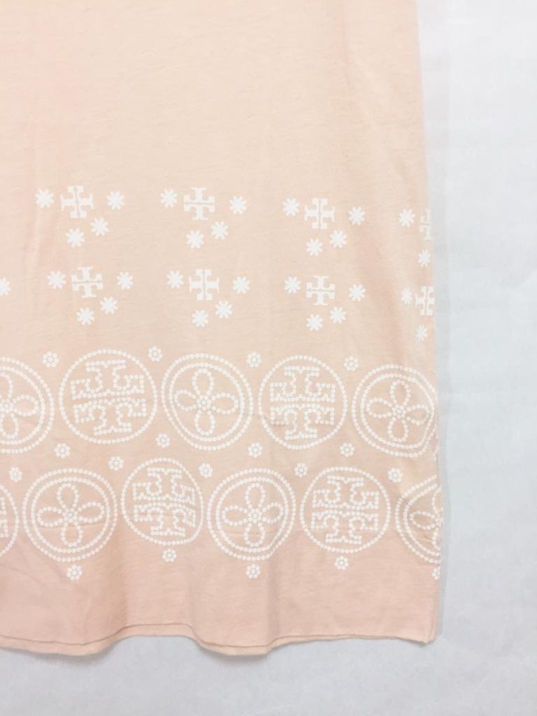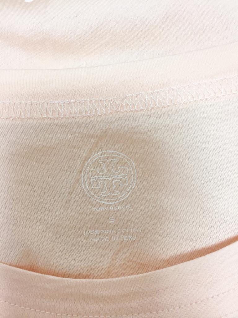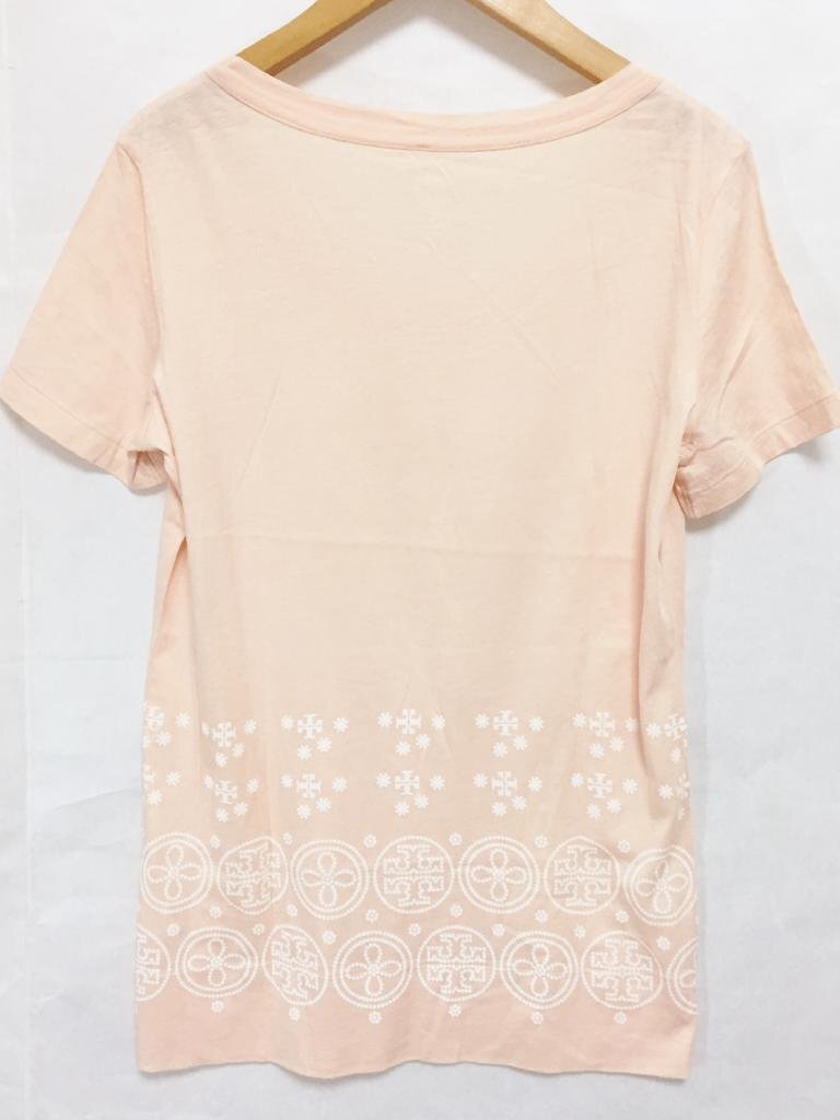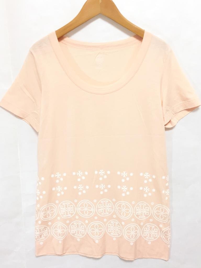 【送料込】 TORY BURCH トリーバーチ Tシャツ サーモンピンク ロゴプリント コットン 綿100% クルーネック 薄手 sizeS インポート/972688