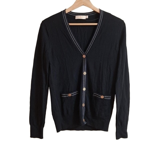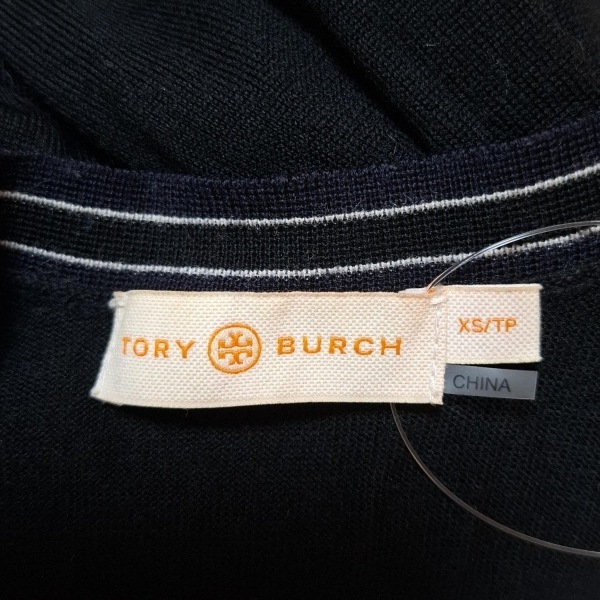 トリーバーチ TORY BURCH カーディガン サイズXS - 黒×ダークネイビー×白 レディース 長袖 トップス