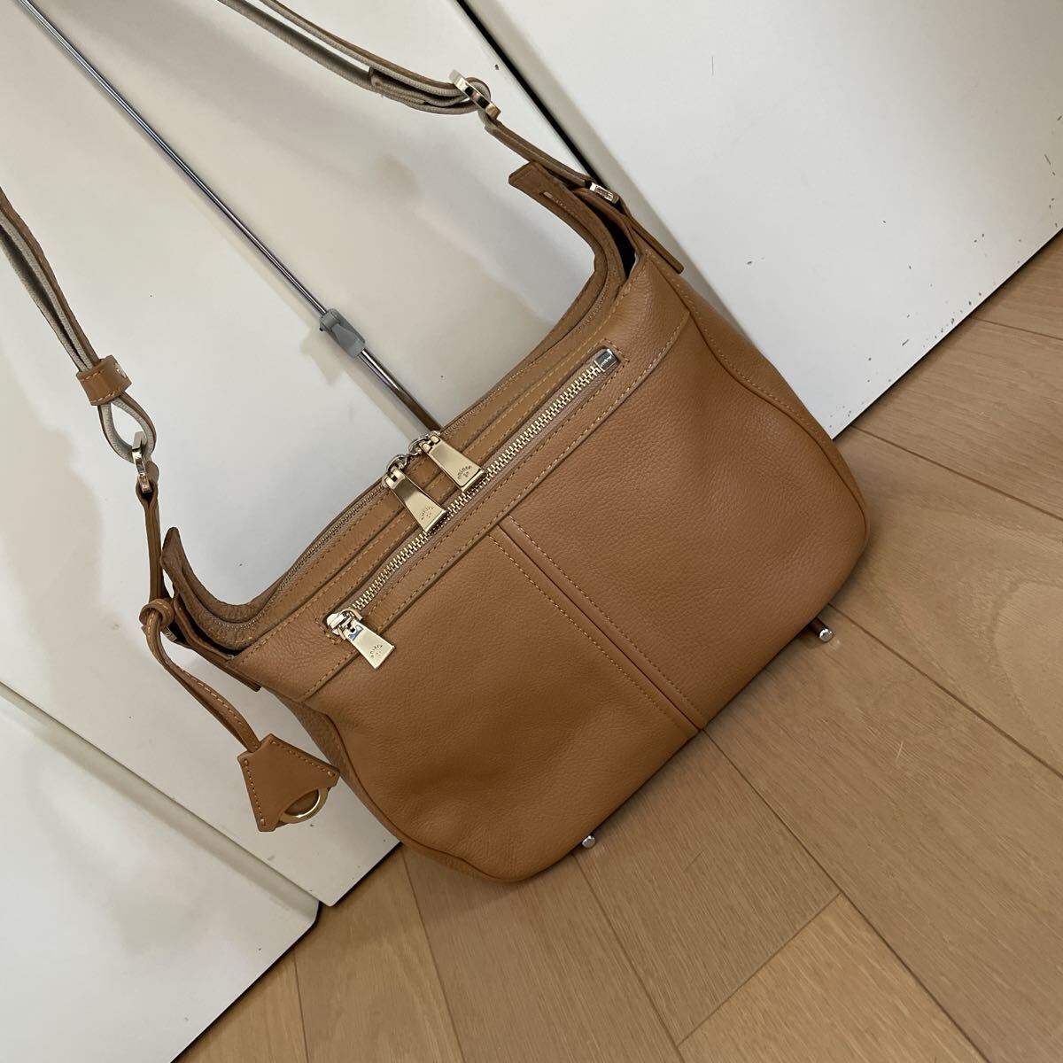 小ぶりのショルダーバッグはカジュアル限定のイメージがありますがそれを打破したかったというのがこのモデルの開発経緯。