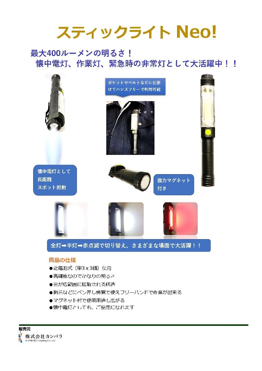 懐中電灯、作業灯、緊急時の非常灯として多用途に利用できます。3段階切換単三電池3本付■送料について・送料無料■返品、交換について・商品の欠陥や不良など当社原因による場合には、返品・交換を受け付けさせていただきます。・商品到着後、5日間以内にお電話ください。 なお、お客様都合による返品・交換はいかなる場合でも受け付けておりませんので、ご了承ください。