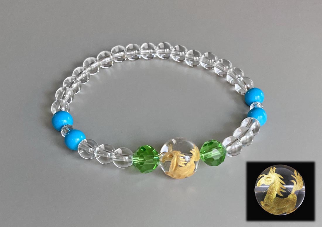 水晶パワー『黄金の左馬』 開運・縁起ブレスレット18cm