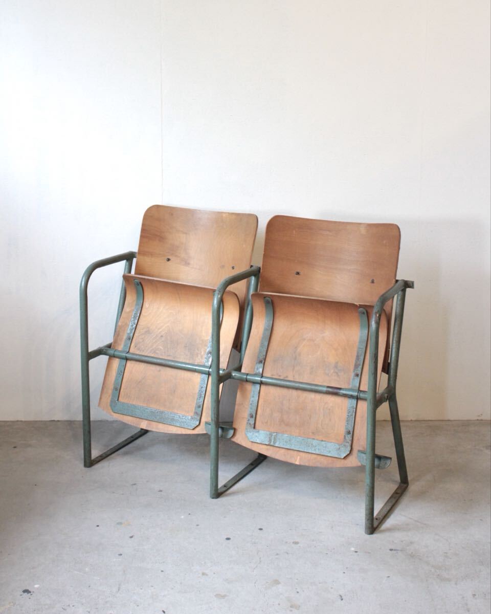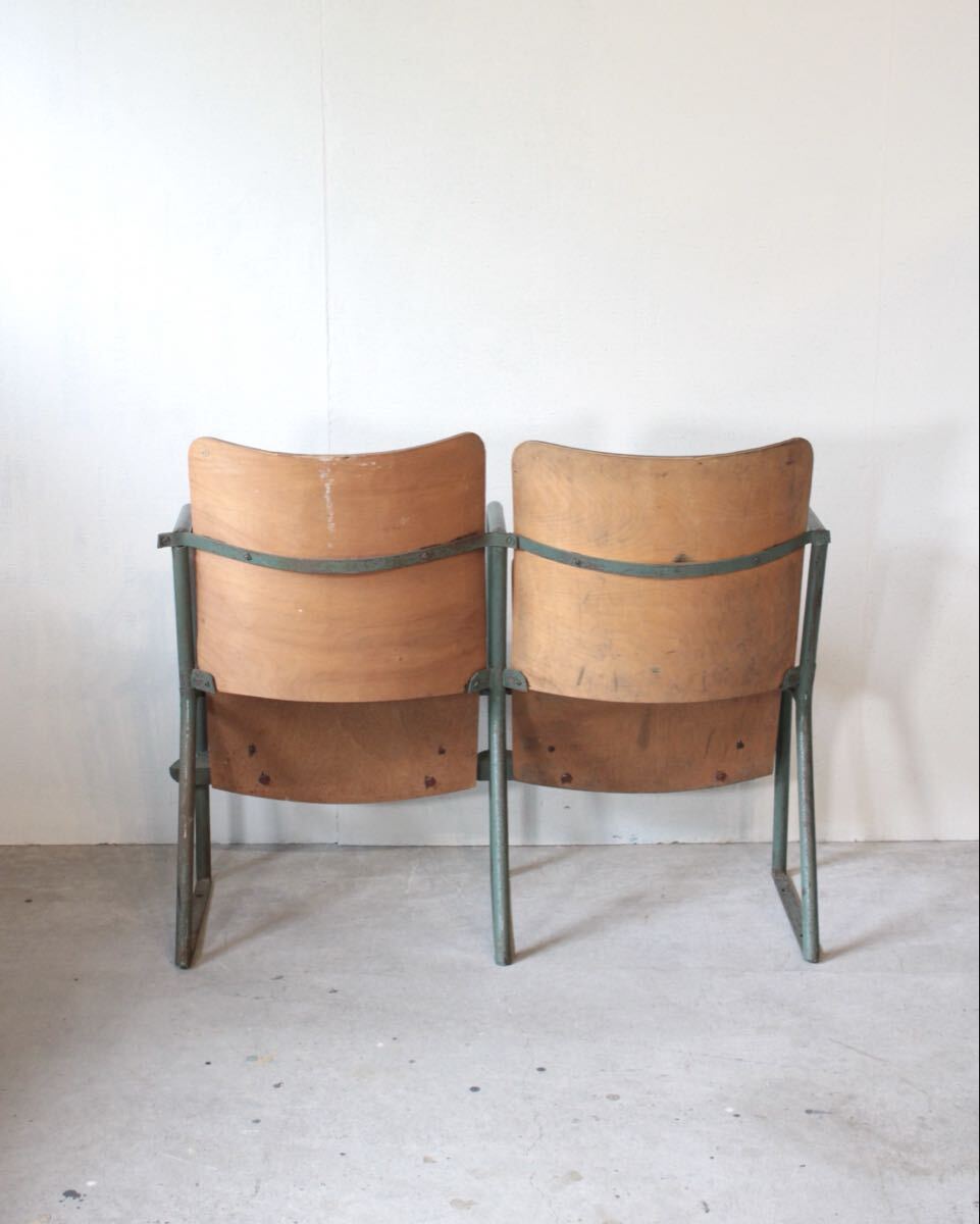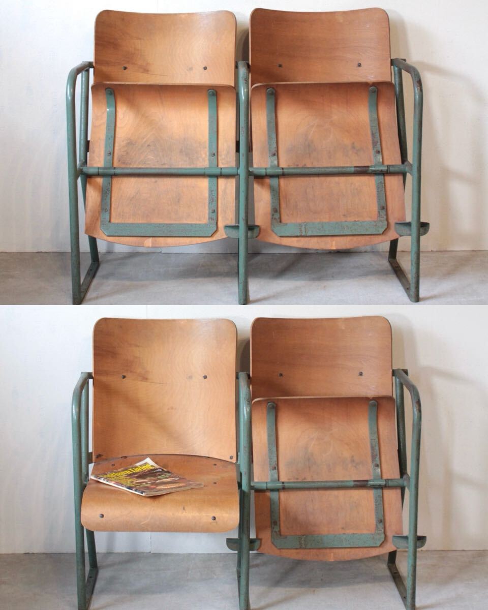 【レア】ヴィンテージ シネマチェア シアターベンチ 2人掛け 2P アームチェア インダストリアル 店舗什器 ディスプレイ 待合椅子 14296