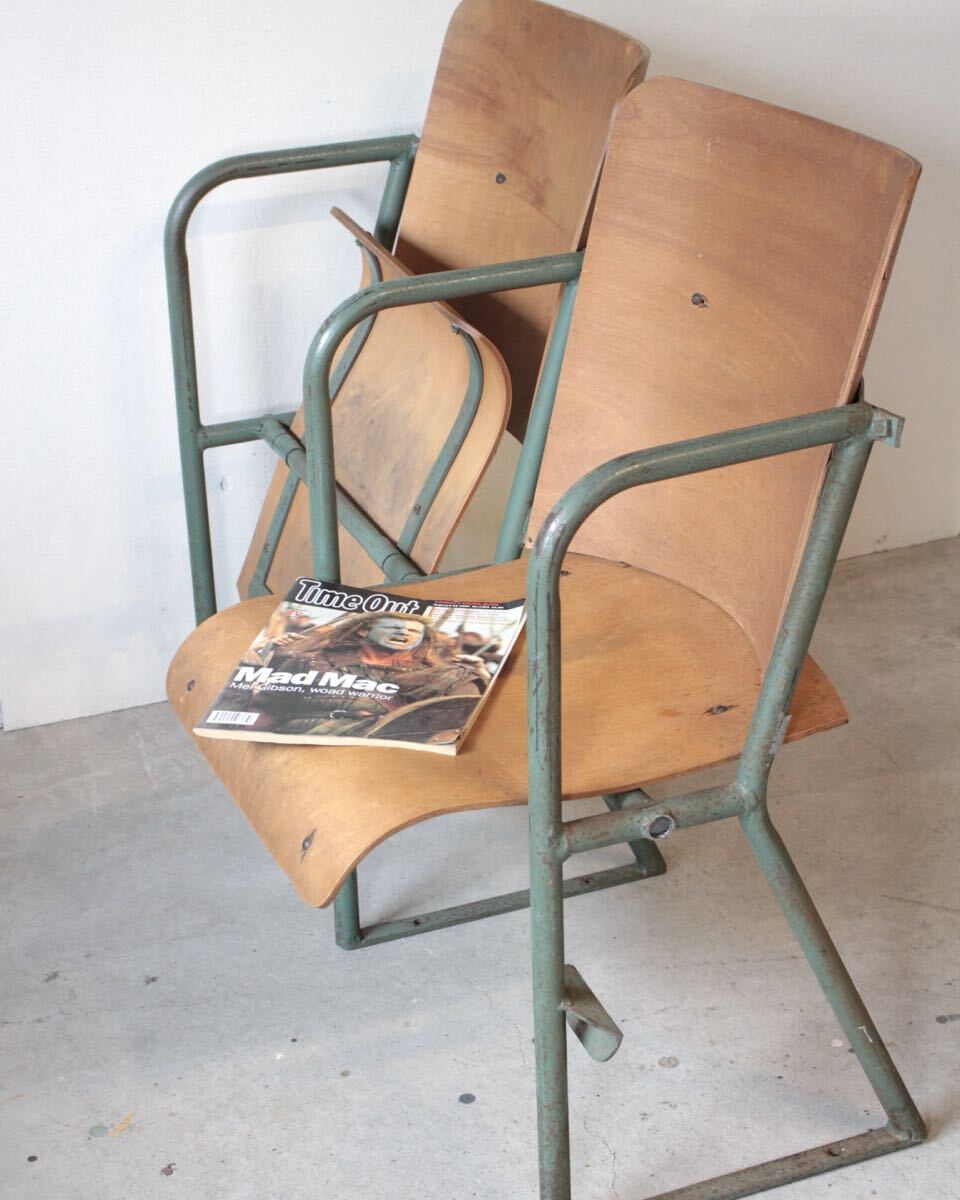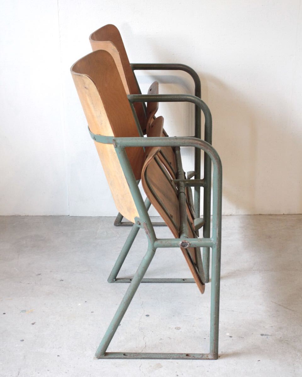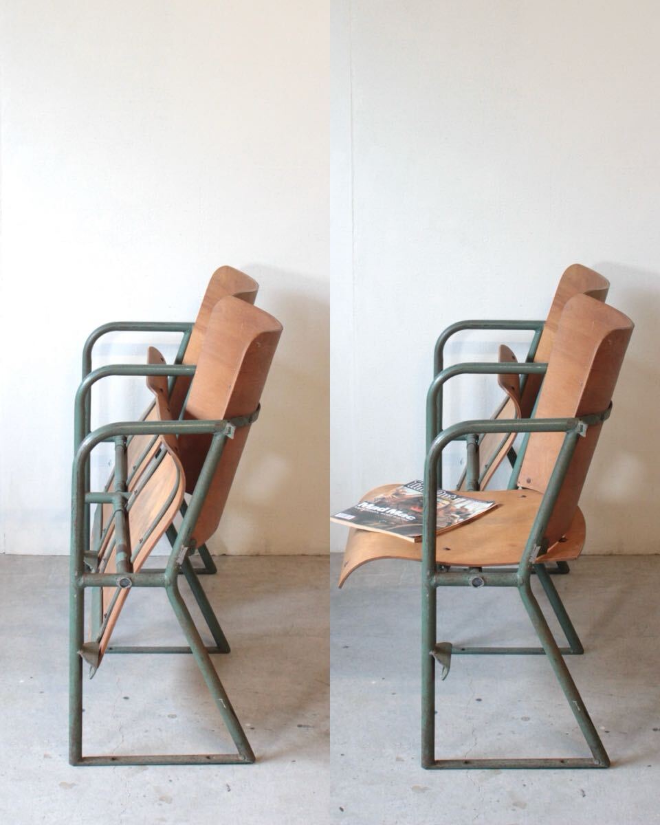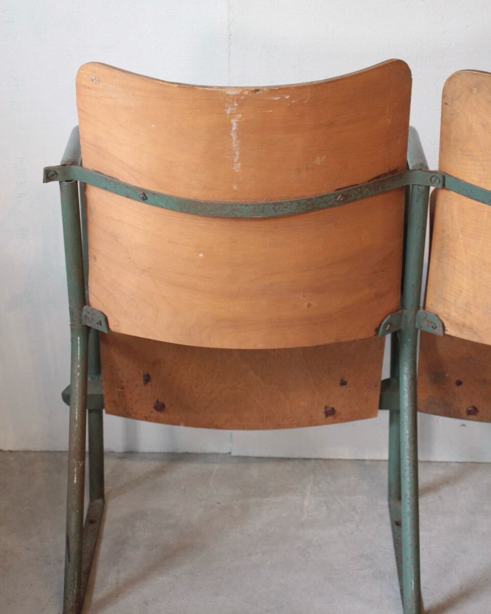 【レア】ヴィンテージ シネマチェア シアターベンチ 2人掛け 2P アームチェア インダストリアル 店舗什器 ディスプレイ 待合椅子 14296