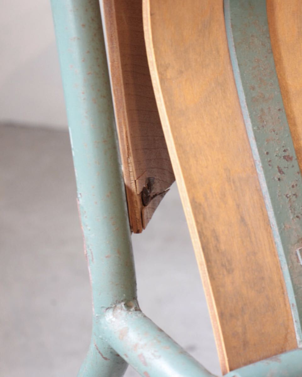 ミントグリーンのフレームが、インダストリアルなシネマチェア。