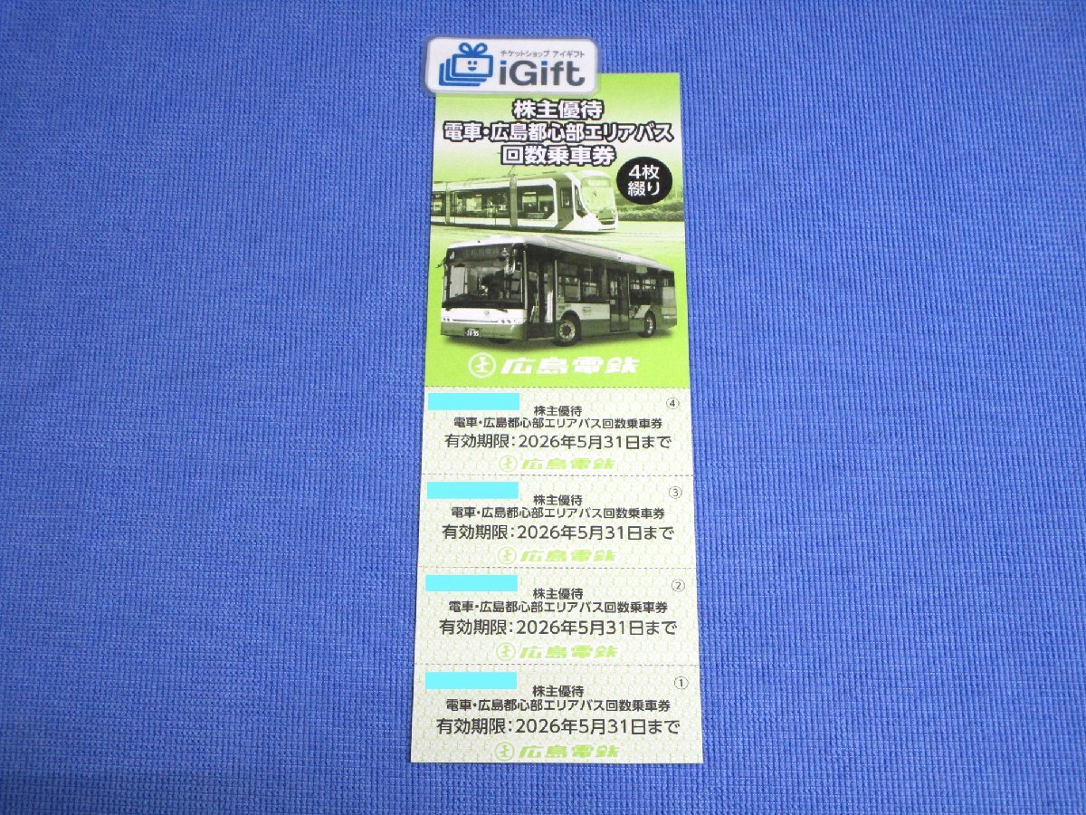 | 広島電鉄 株主優待 電車・広島都心部エリアバス回数乗車券(4枚綴) |