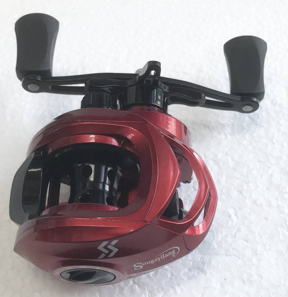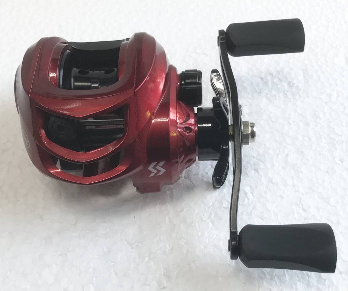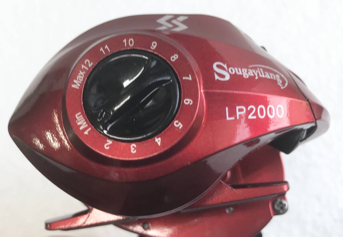 写真のSOUGAYILANGベイトキャスティングリール LP200ワインレッドメタリック左ハンドル(新品未使用)を発送します(送料無料)。