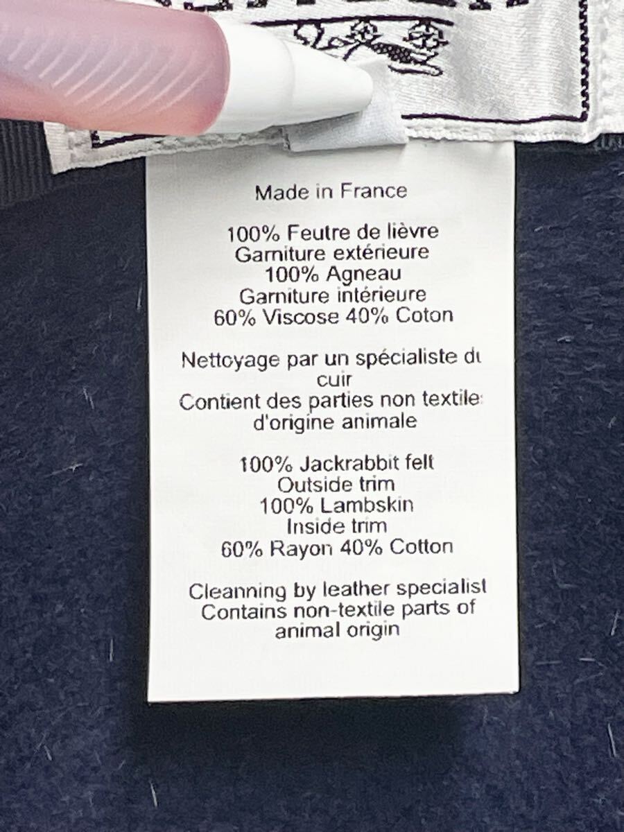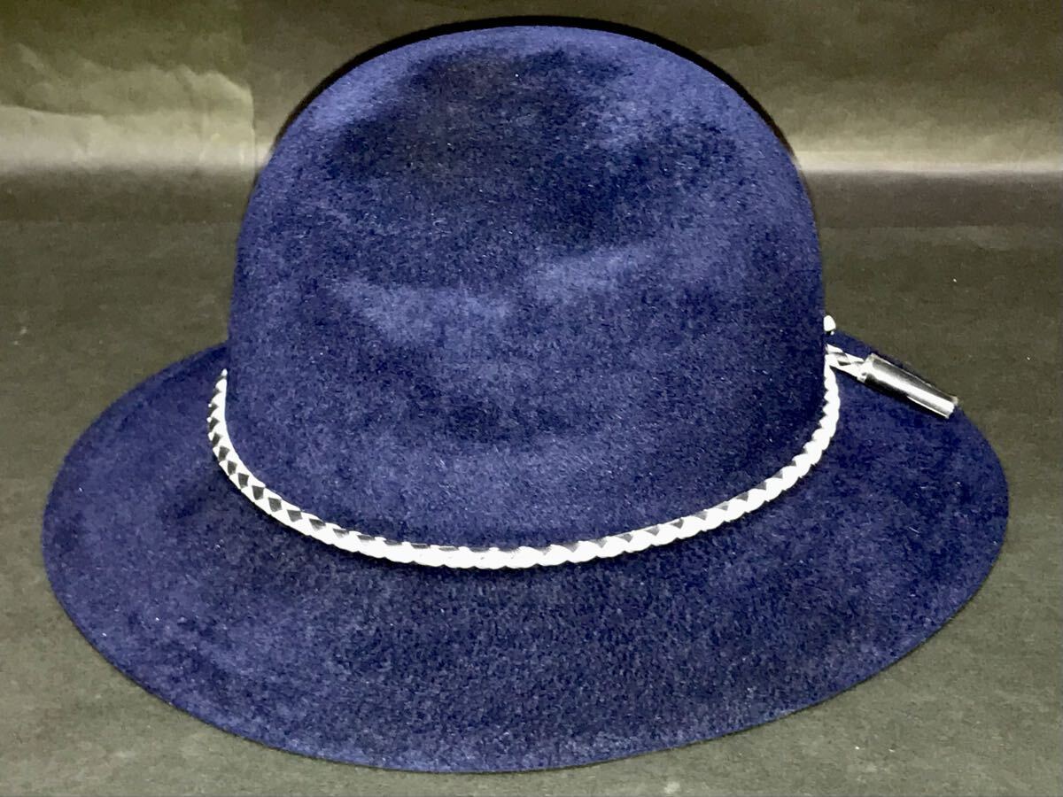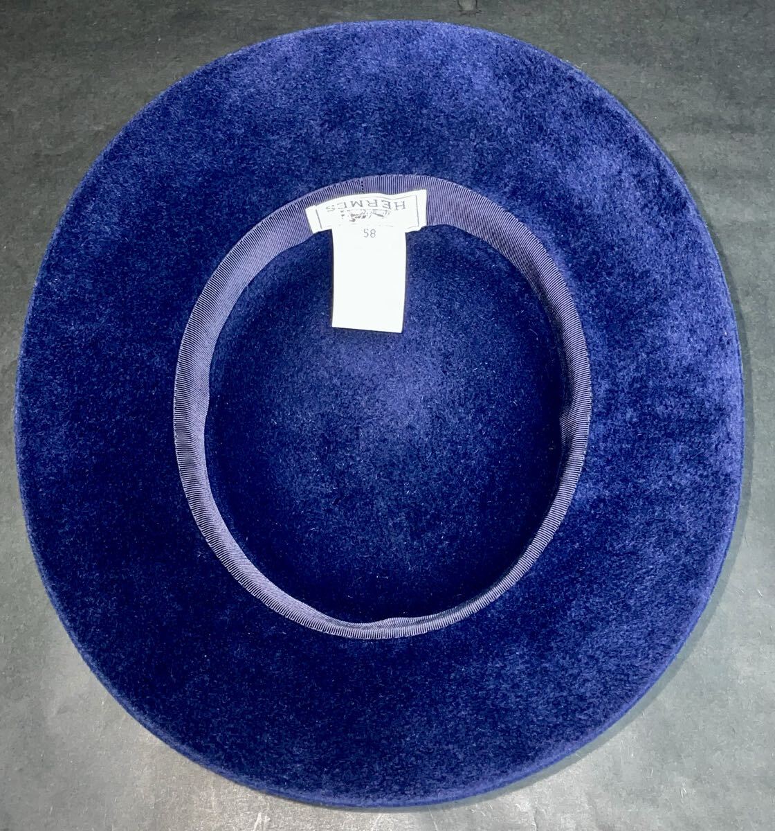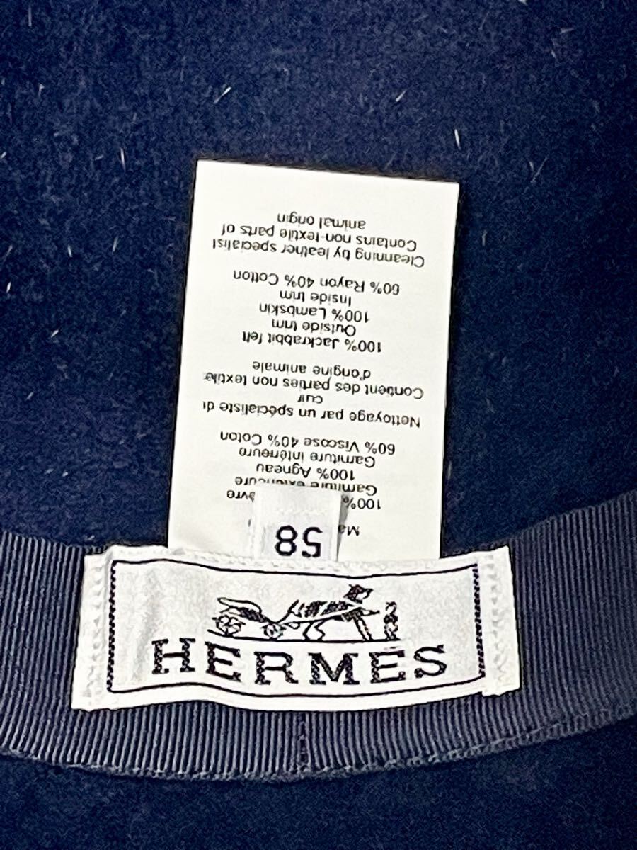 エルメス★HERMES★ラビットフェルト ハット 帽子 レザー飾り 58cm ネイビー 秋冬物★美品
