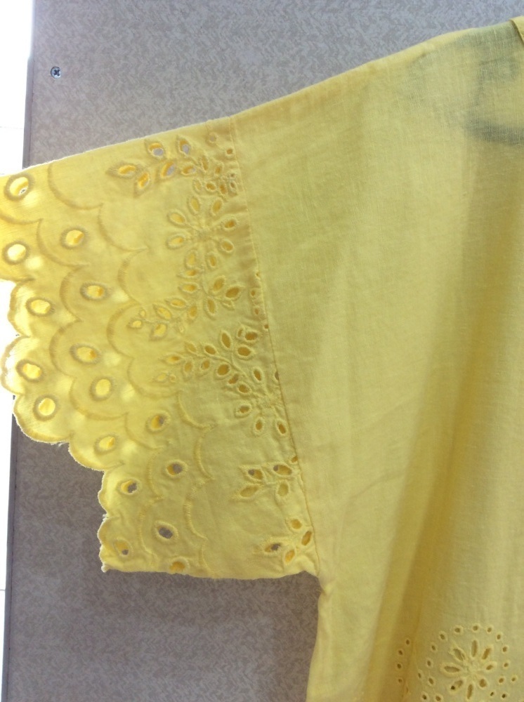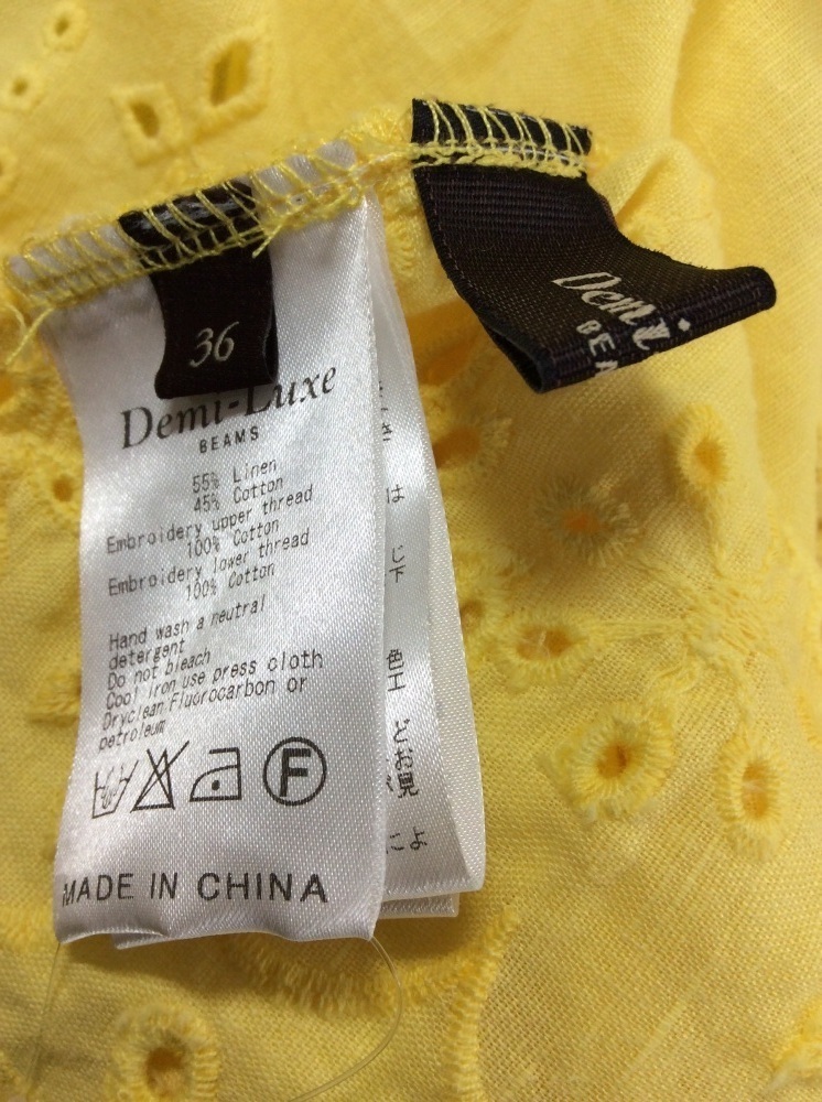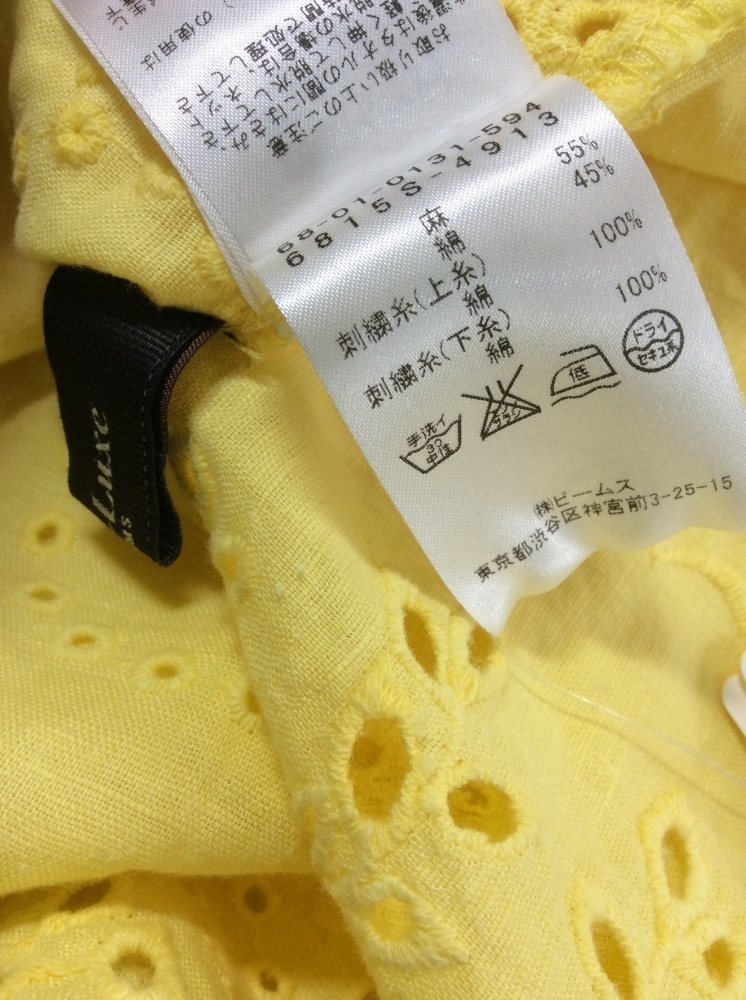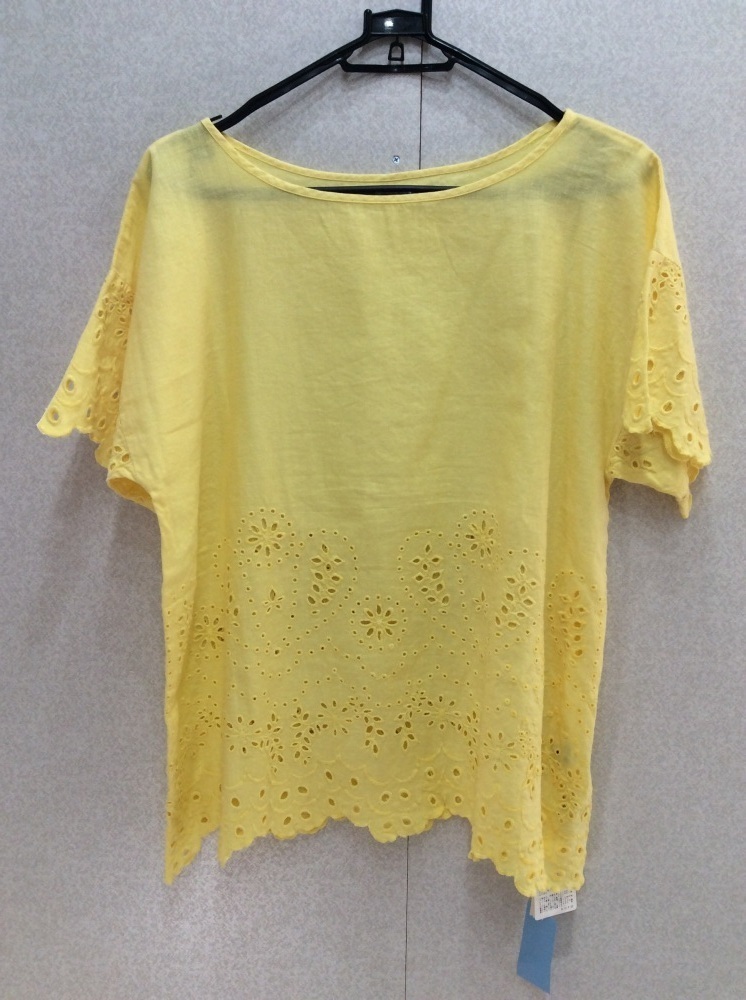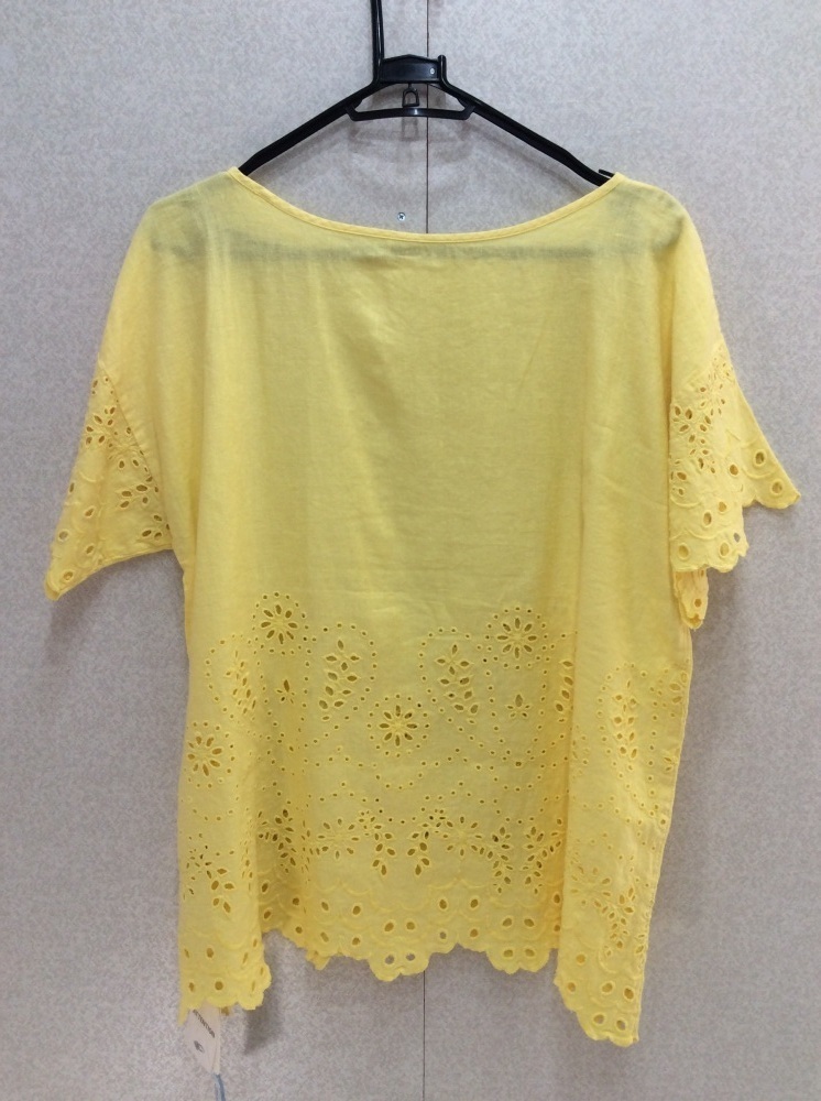 管理番号:40^123086 Demi-Luxe BEAMS/デミルクス ビームス タグ付き 黄色半袖ブラウス 麻、綿 表示サイズ:表記なし 実寸(参考)