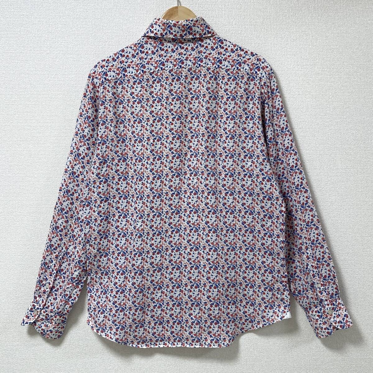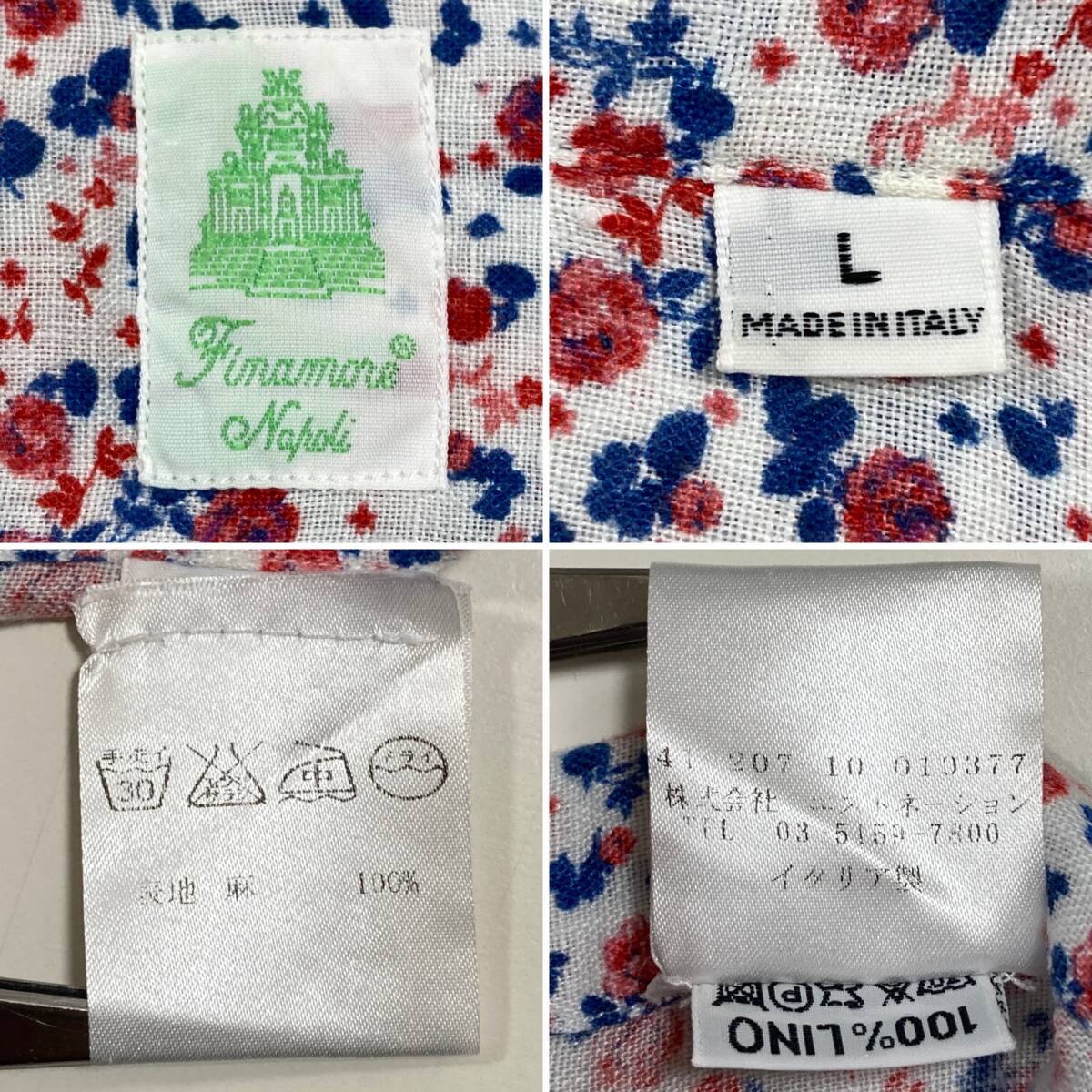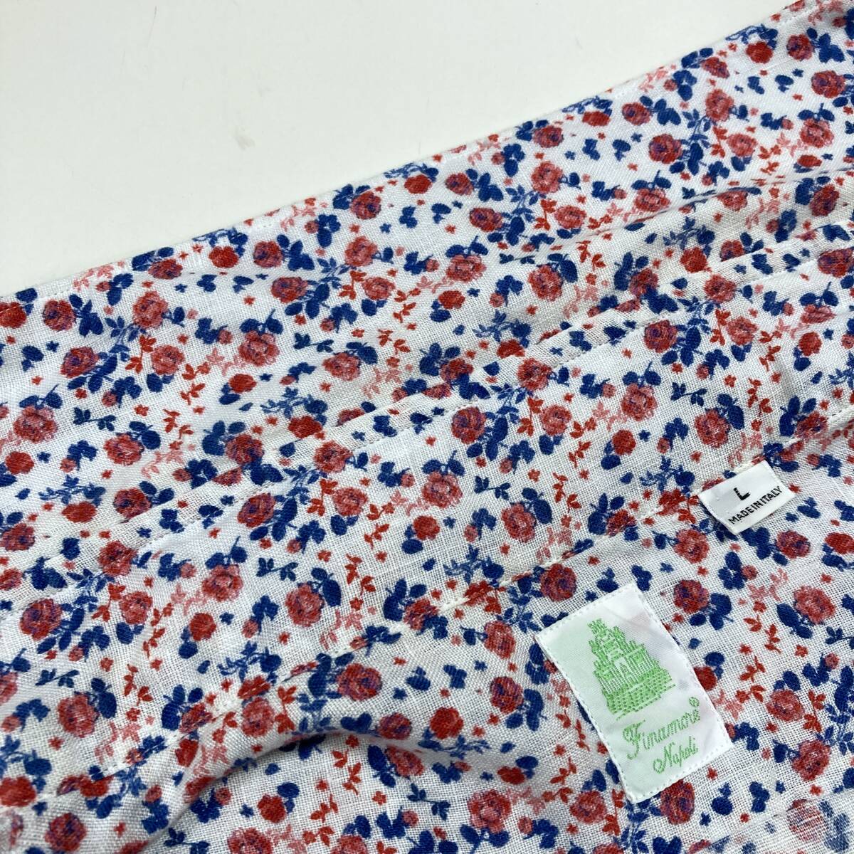 Finamore イタリア製 リネン 100% 花柄 カッタウェイ 長袖 シャツ Lサイズ フィナモレ 朝 SIMONE 小花 5090012